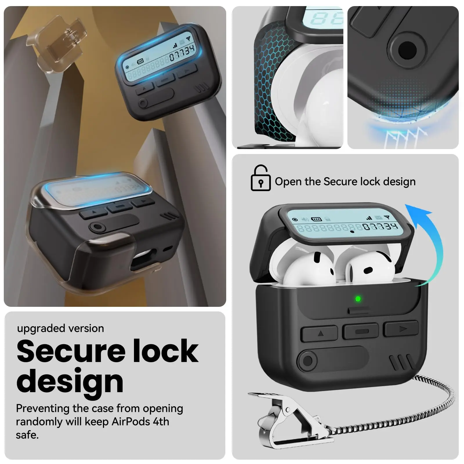 Nuevas fundas para buscapersonas para AirPods 4 Pro 2/1 (con bloqueo de seguridad), protector de PC duro y resistente para Apple AirPods, funda de cuarta generación para hombres