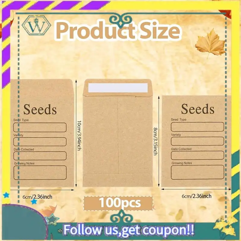 Contenido del paquete: El paquete contiene 100 sobres de paquetes de semillas.Los sobres para ahorrar semillas miden aproximadamente 3,54 x 2,36 pulgadas.Suficiente para satisfacer sus diversas necesidades y compartirlas con sus amigos y familiares.