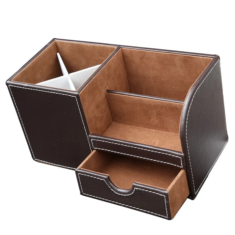 Nuevo 1 Uds. Organizador de papelería de escritorio multifunción de cuero PU caja de almacenamiento bolígrafo/lápiz, teléfono móvil, tarjetas de nombre comercial Control remoto Ahorra tiempo y estrés.Dedique menos tiempo a buscar dónde se reprodujo sus documentos de oficina y más tiempo centrándose en otros asuntos.