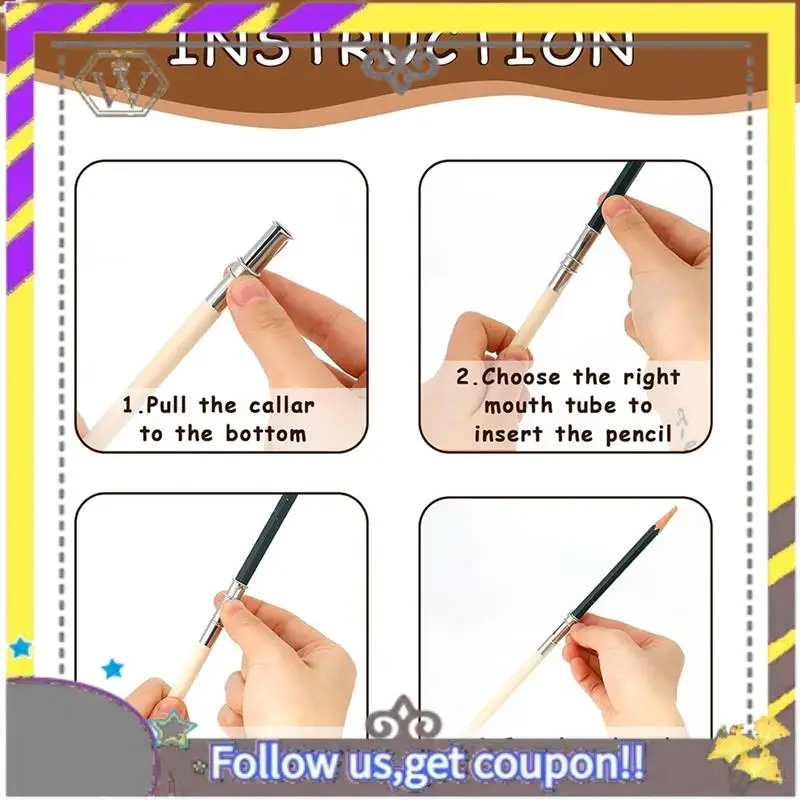 Fácil de montar: para usar un extensor de lápiz para el artista, baje el collar, seleccione el tamaño adecuado para insertar el lápiz y empuje el collar con fuerza para comenzar.Si la funda es demasiado grande, fíjela con cinta adhesiva antes de repetir el proceso.