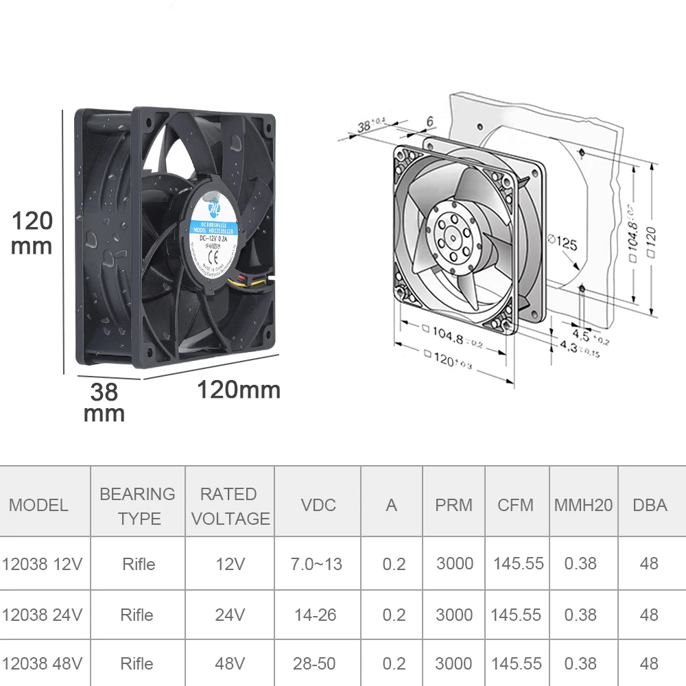 Nuevo 12cm 12038 DC12V DC24V DC48V 220V-240V IP68 impermeable humidificador ultrasónico Industrial refrigeración ventilador de doble rodamiento