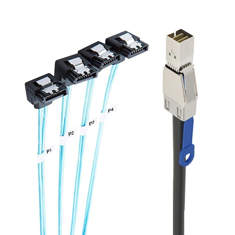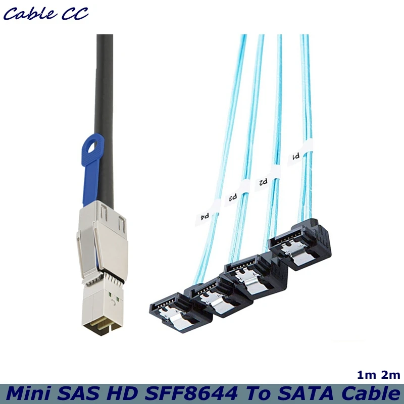 Comprar Nuevo 1m 2m Mini SAS HD SFF8644 a Cable SATA 90 grados 4 puertos 7 pines, SFF-8644 a 4 SATA 7 pines 12GB para servidor de datos de disco duro