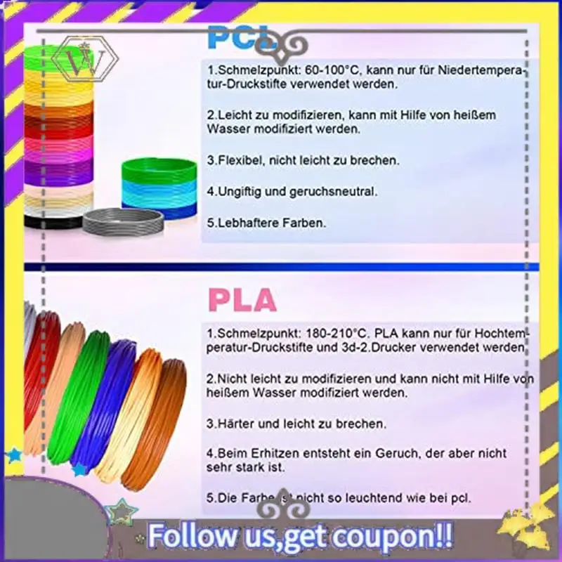 Nuevo 20 Uds. Juego de colores de bolígrafo 3D de 10 M cada uno, filamento PCL de 1,75 Mm para bajas temperaturas, bolígrafo 3D para niños 1.El material PCL es un material biodegradable, no tóxico e insípido, más adecuado para que lo usen los niños.
