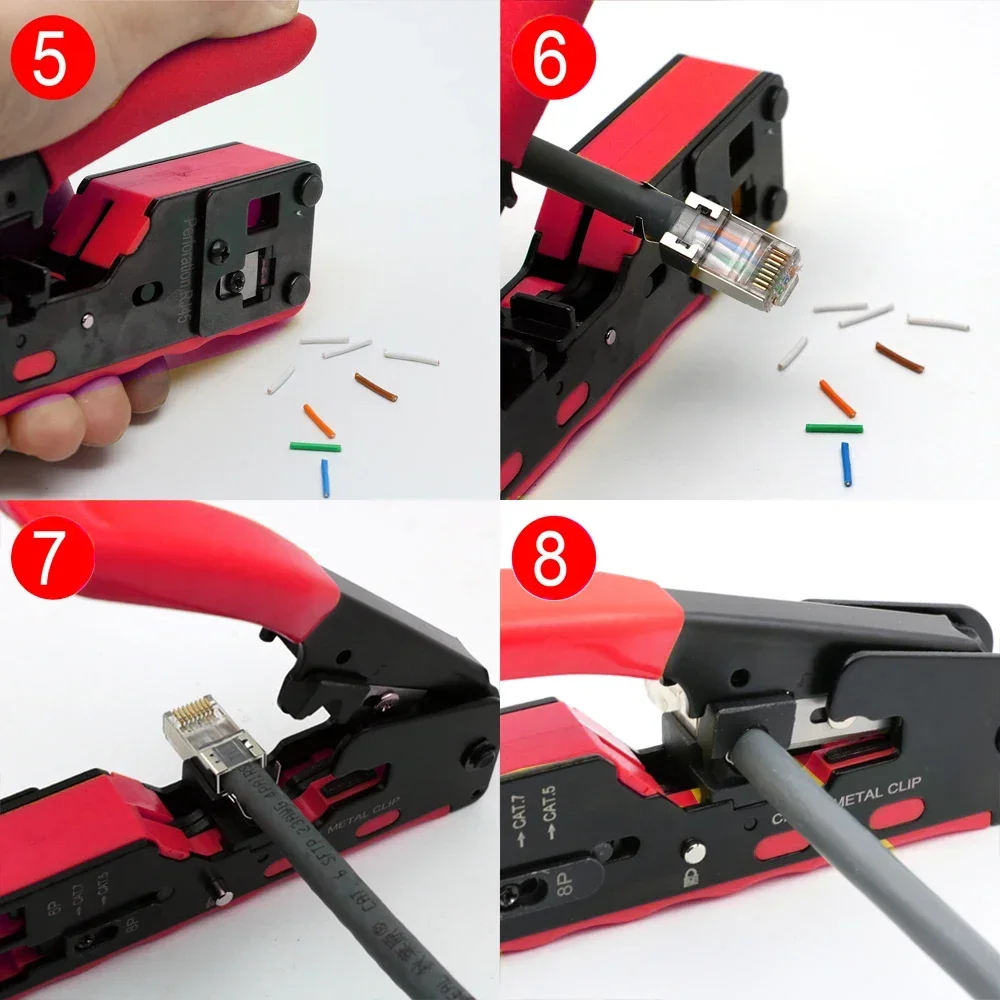 Comprar Nuevo 2024 CAT5 CAT6 CAT6A CAT7 CAT8 alicates de prensado rj45 herramienta de red pelador cortador abrazadera de cable ethernet kit lan tira