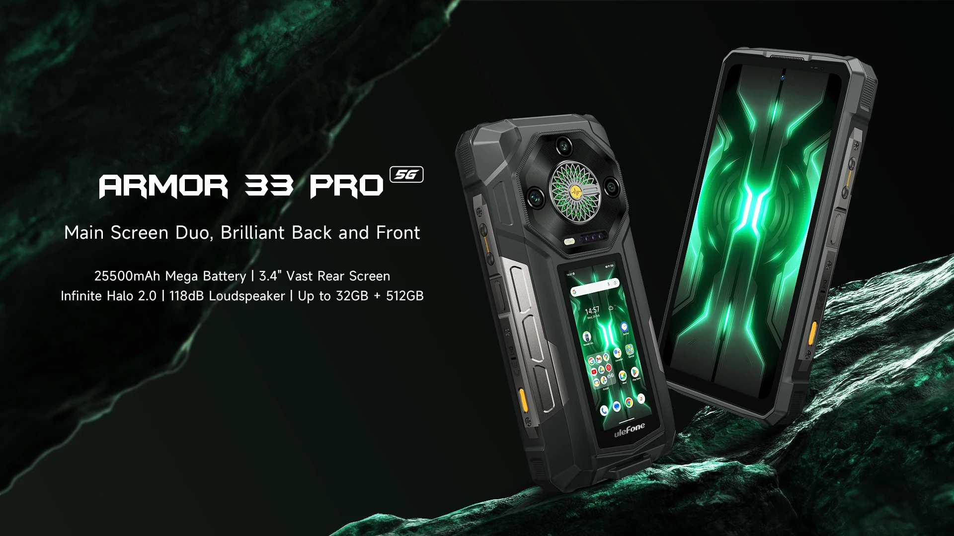 Comprar 【Nuevo 2025】Ulefone Armor 33 Pro 5G Teléfono robusto 25500 mAh 512 GB ROM 120 Hz Pantalla dual NFC Smartphone Android MTK Dimensity 7300X