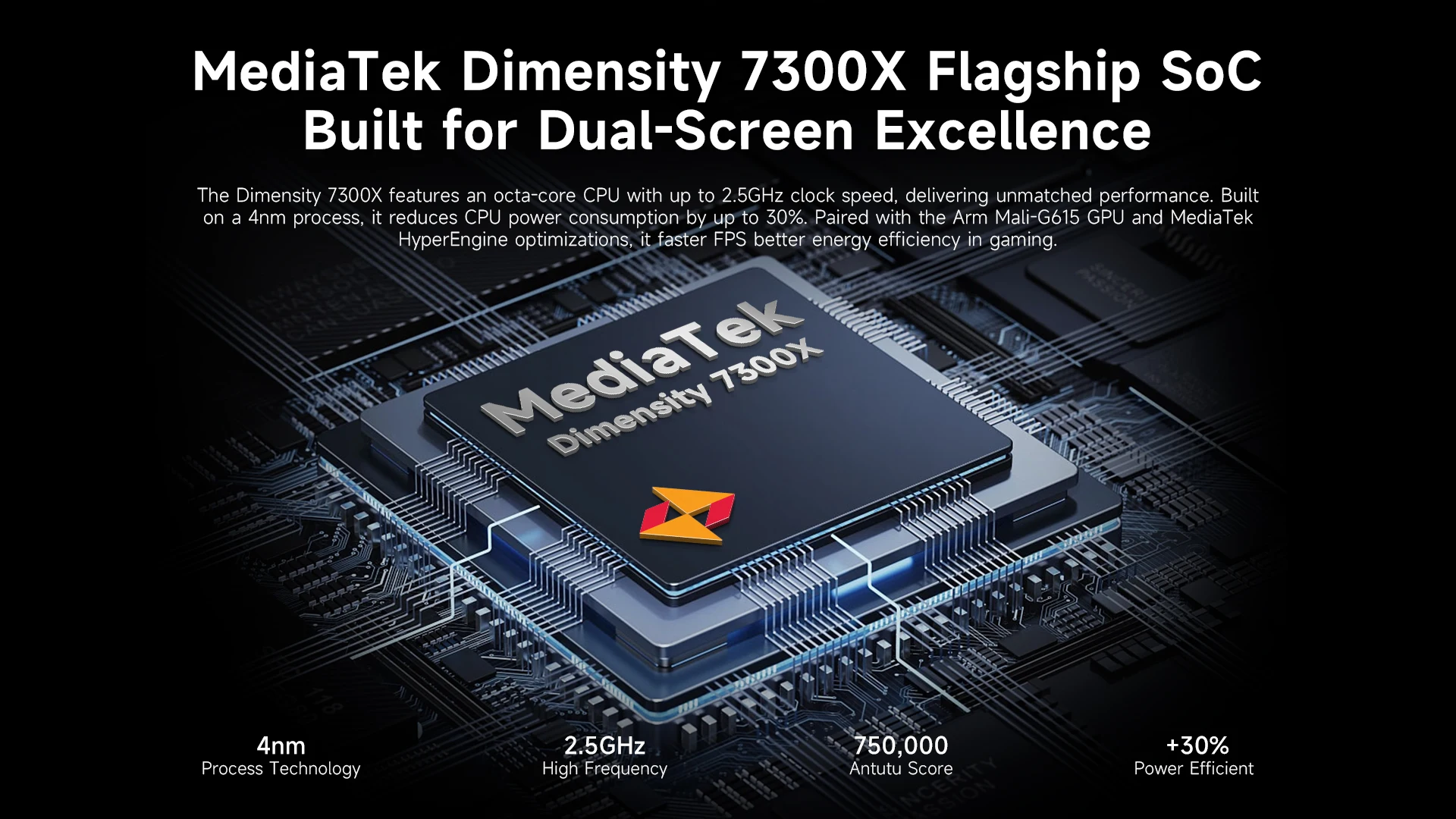 La Dimensity 7300X cuenta con una CPU octa-core con una velocidad de reloj de hasta 2,5 GHz, lo que ofrece un rendimiento inigualable.Construido con un proceso de 4 nm, reduce el consumo de energía de la CPU hasta en un 30 %.Combinado con las optimizaciones de la GPU Arm Mali-G615 y MediaTek HyperEngine, el FPS más rápido mejora la eficiencia energética en los juegos.