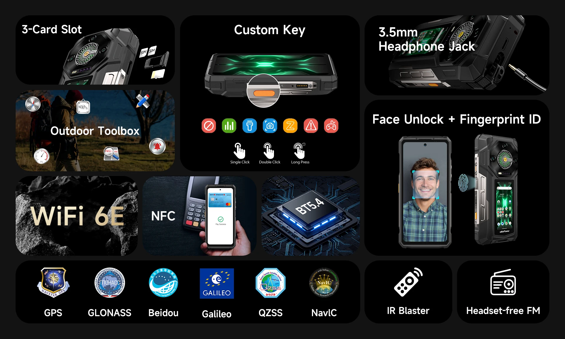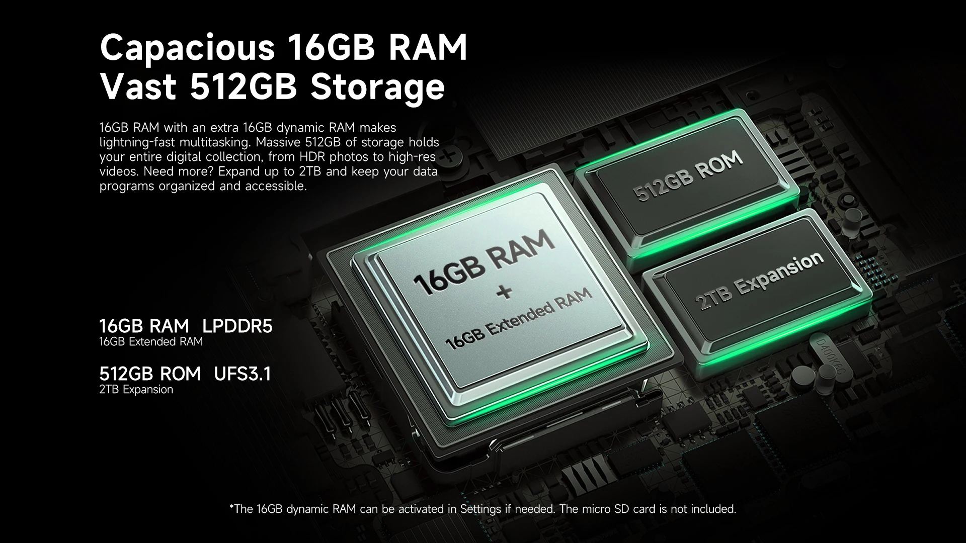 25500 mAhMega batería|3.4"Vaste pantalla trasera| Halo infinito2.0| 118 dBAltavoz| Hasta 32GB +512 GBROM (32GBRAM=16GB+16GB)