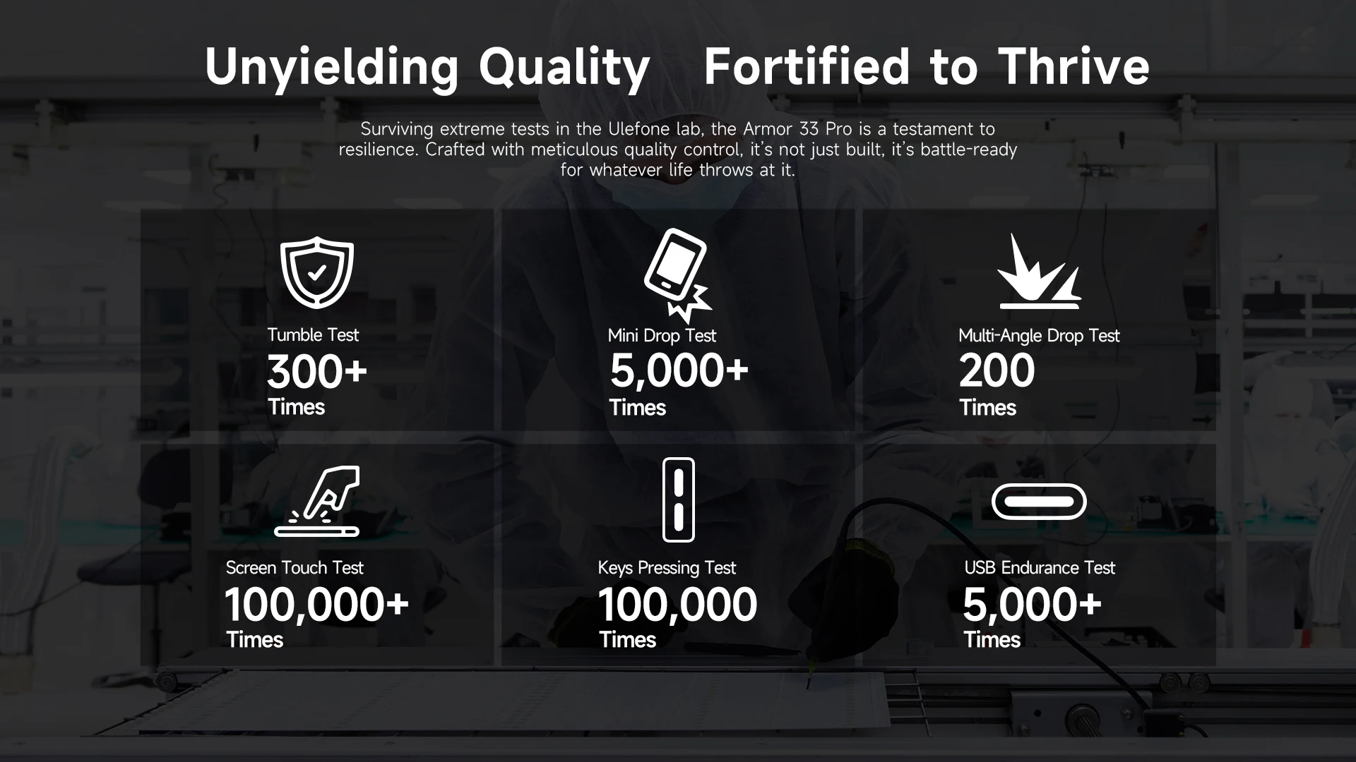 Armor 33 Pro con clasificaciones robustas IP68 y IP69K y certificación MIL-STD-810H que resiste la inmersión en agua, la invasión de polvo y la resistencia a caídas.Esto es especialmente beneficioso para operar en entornos polvorientos y desafiantes, como sitios de construcción o operaciones mineras.