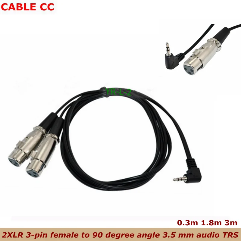 Comprar Nuevo 2XLR hembra de 3 pines a ángulo recto 1/8 XLR3F a ángulo de 90 grados 3,5mm audio TRS para cámara DV/micrófono/amplificador/micrófono