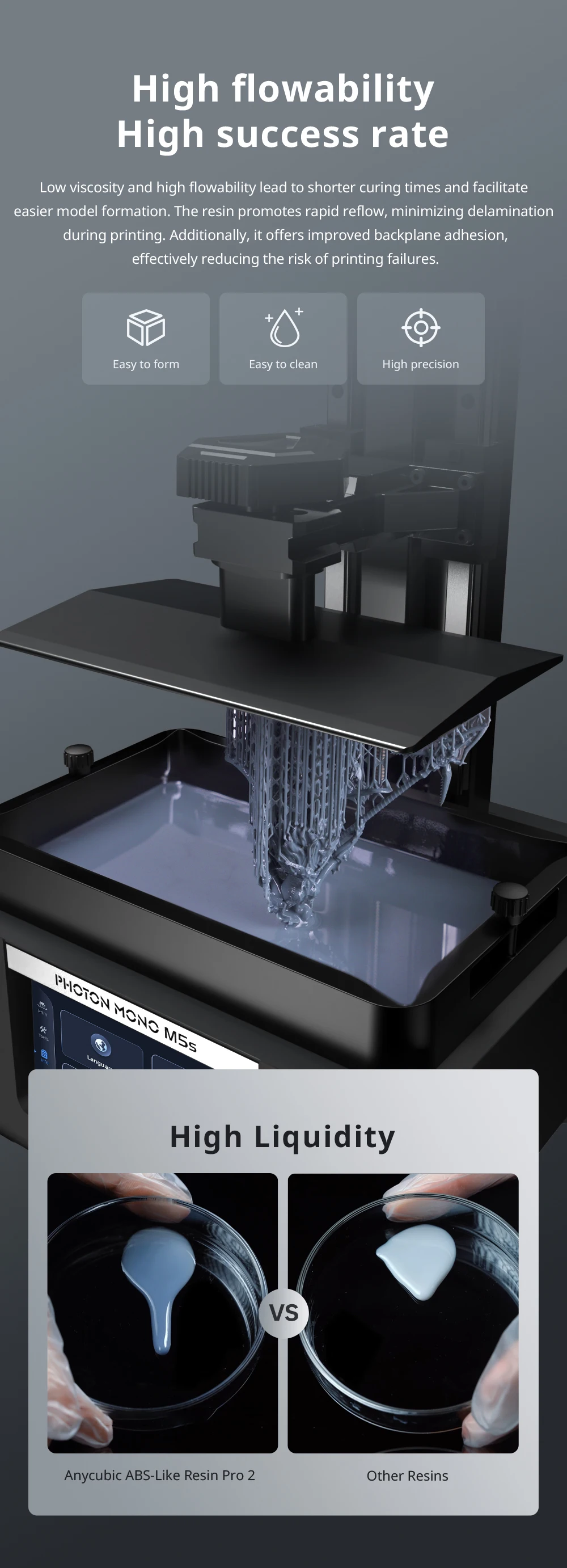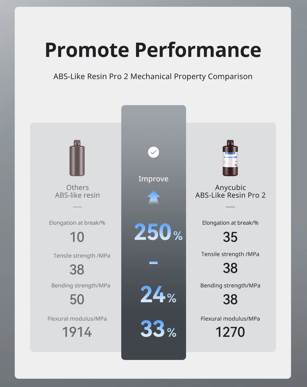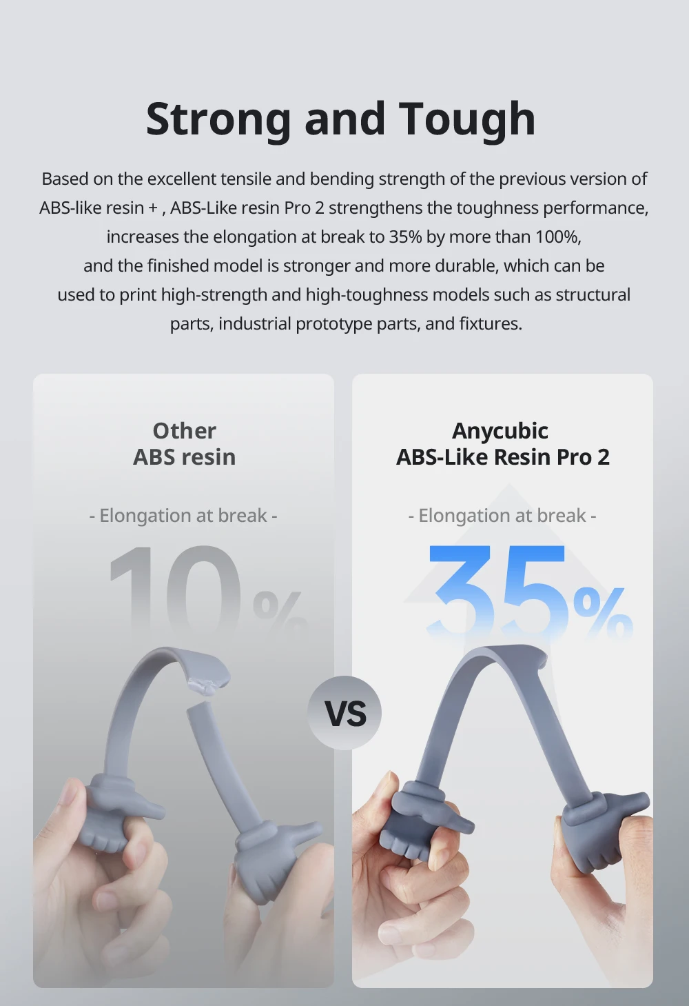 Basado en la excelente resistencia a la tracción y a la flexión de la versión anterior de resina tipo ABS +, la resina tipo ABS Pro 2 fortalece el rendimiento de dureza.