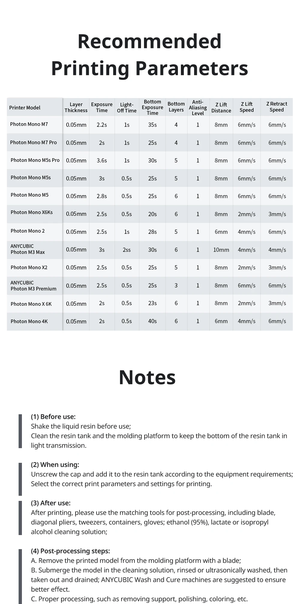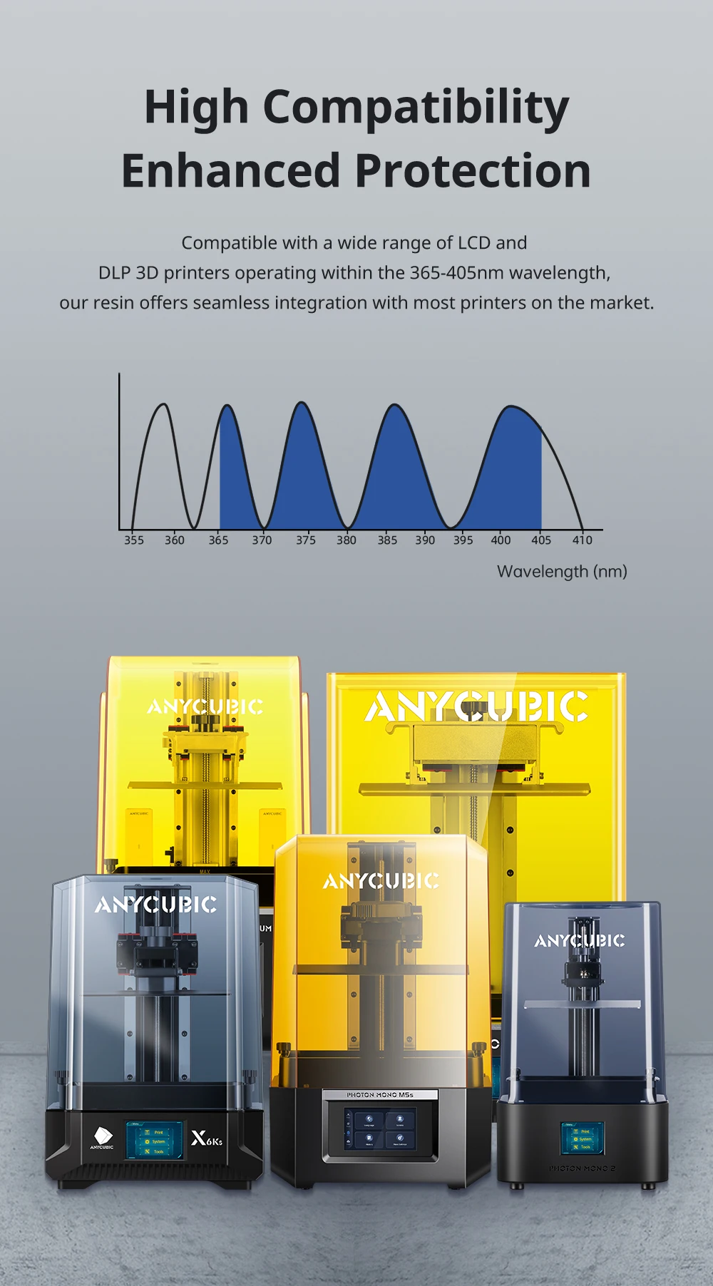 Compatible con una amplia gama de impresoras LCD y DLP 3D que funcionan dentro de una longitud de onda de 365-405 nm, nuestra resina ofrece una integración perfecta con la mayoría de las impresoras del mercado.