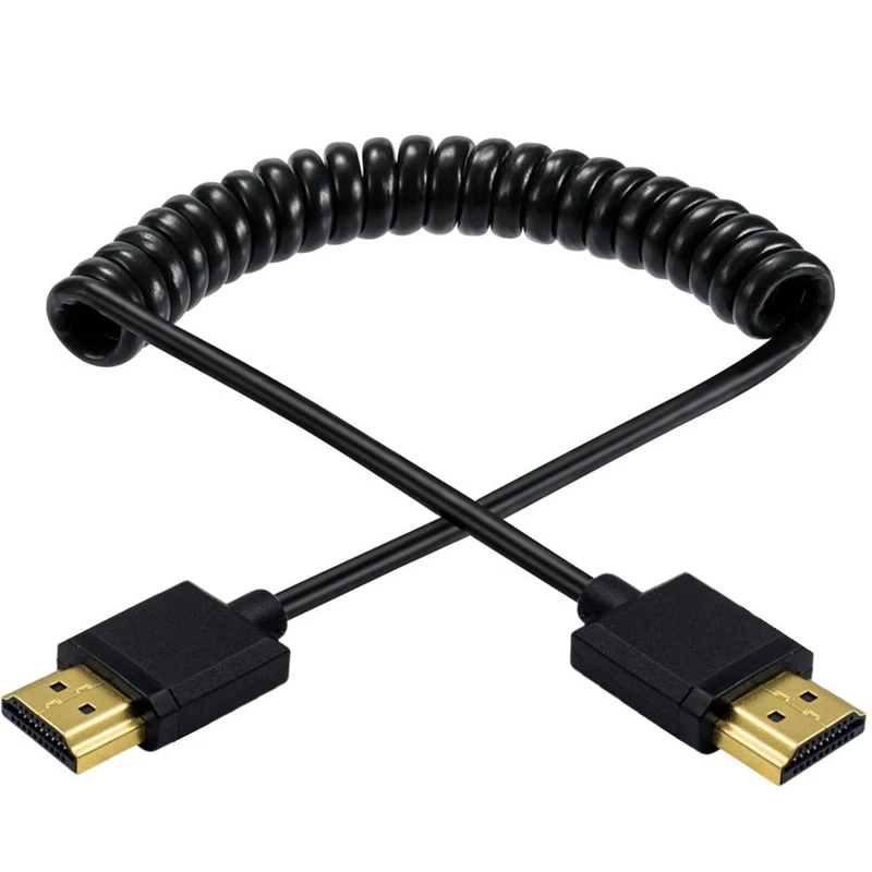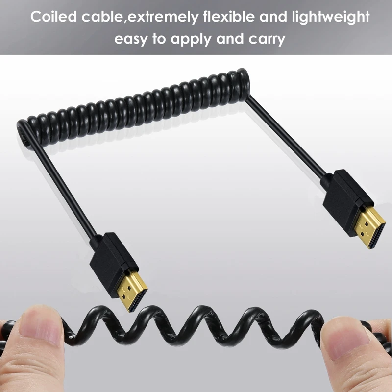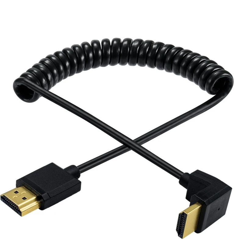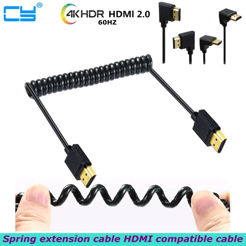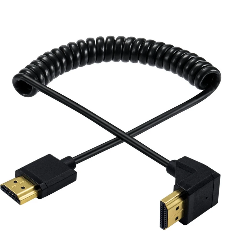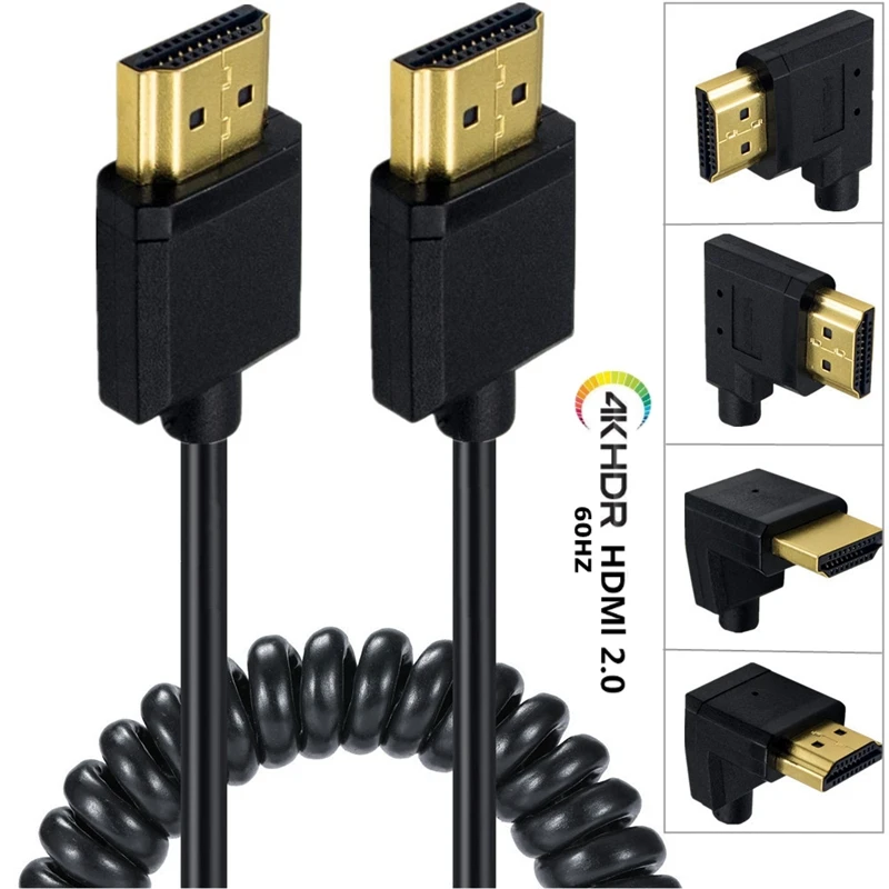 Comprar Nuevo 4K * 2K @ 60HZ OD 3,2mm Cable en espiral compatible con HDMI 2,0 a 90 grados HDMI resorte elástico Flexible Cable HD fino