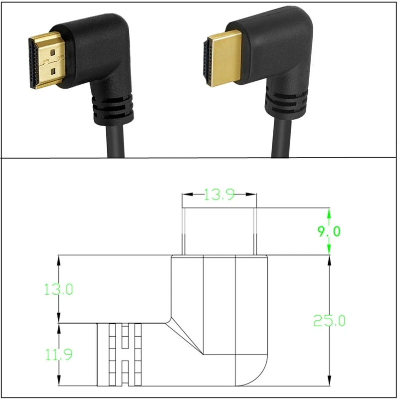 Versión 2.0 Cable HD compatible con HDMI Cable de datos de conexión de TV cerebral 4K * 2K 60HZ curvado de derecha a izquierda