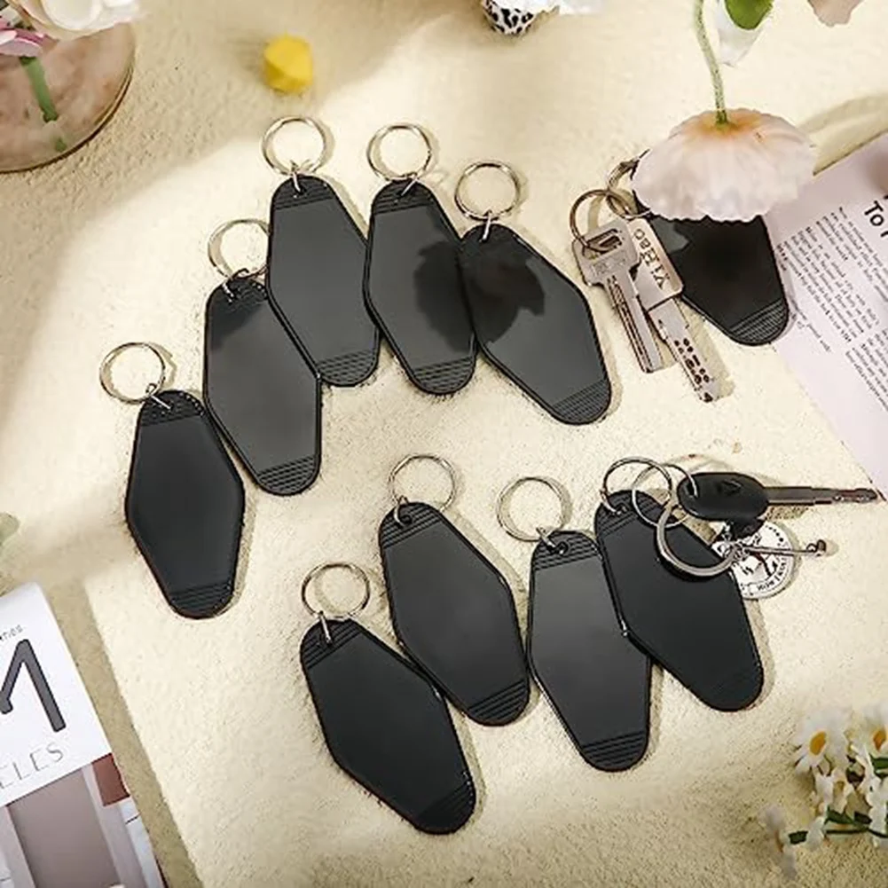 Diseño de doble cara: los llaveros de plástico para hotel tienen una superficie lisa en ambos lados, puedes crear lo que quieras en la superficie en blanco de estos llaveros, como fotos, números y texto memorables, para crear tus propios llaveros.