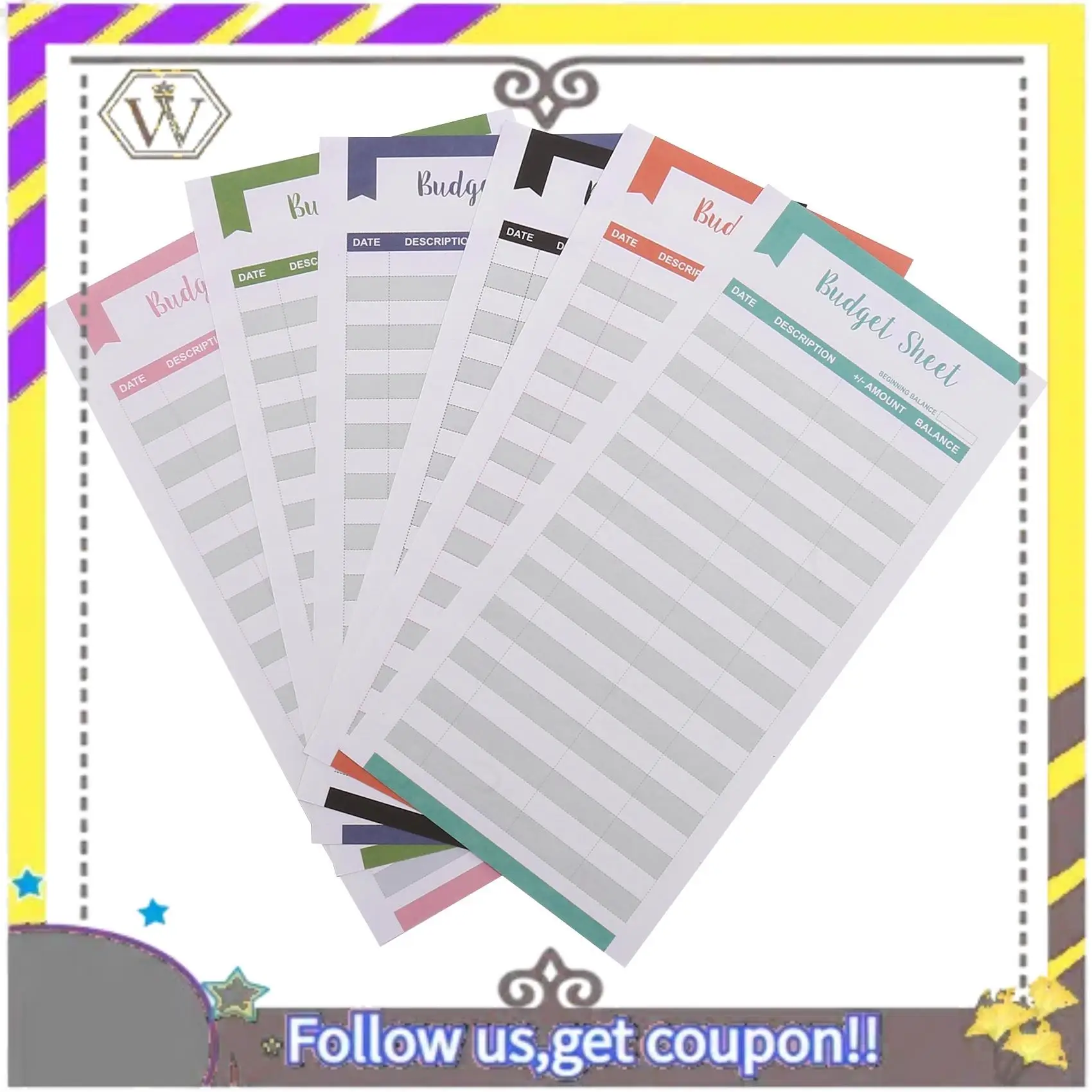 Nuevas hojas de seguimiento de gastos de 60 piezas, rastreadores de presupuesto, sobres de presupuesto aptos en papel, sobre de billetes, presupuesto para personal Hojas de seguimiento de gastos de calidad: impresas con papel de calidad, estas hojas de seguimiento de gastos son resistentes al desgaste, ligeras y flexibles;El paquete incluye 60 hojas de presupuesto en 6 colores, incluidos morado, verde, naranja, rosa, cian y negro, que le ayudan a organizar y resumir diferentes tipos de presupuestos de cuentas.