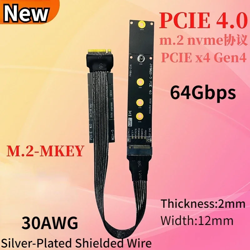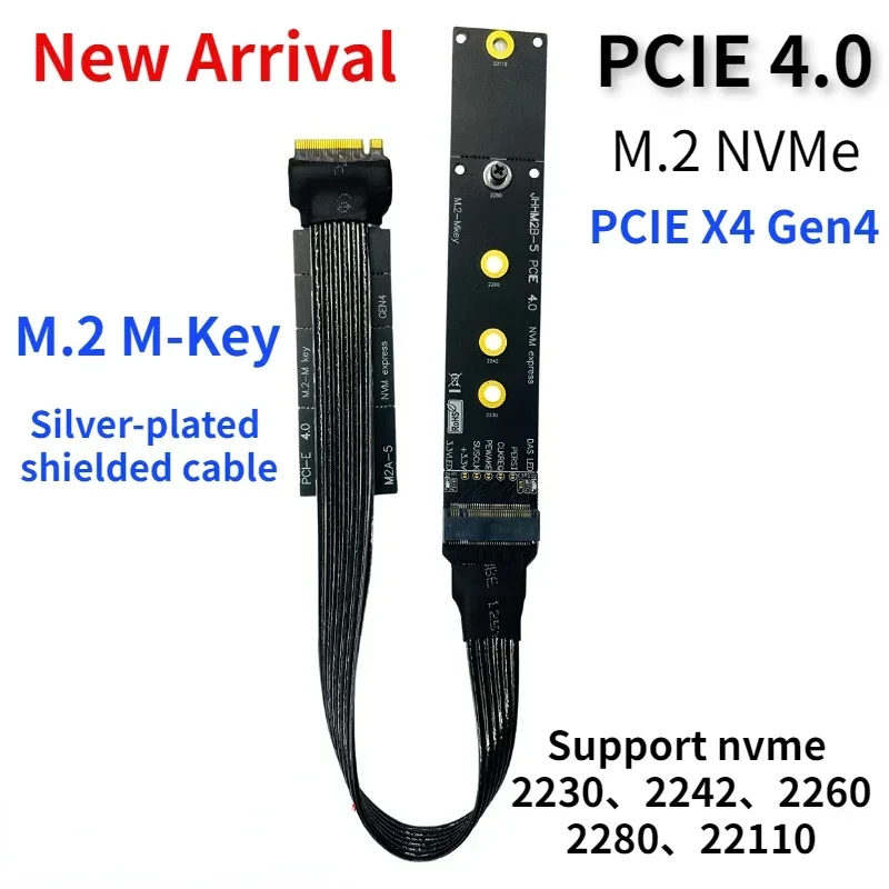Comprar Nuevo 64Gbps Gen4 plateado blindado M.2 NVMe M KEY PCIE 4,0 3,0 X4 Cable de extensión NVME M.2 2260 2280 22110 adaptador elevador SSD