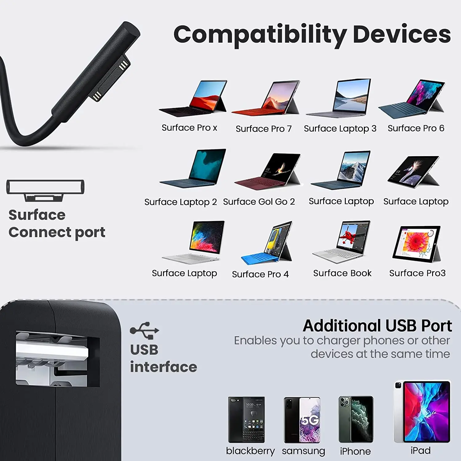 Comprar Nuevo 65W 15V 4A fuente de alimentación portátil cargador/adaptador de CA para Microsoft Surface Pro3 Pro4 Pro 5 Pro 6 Pro7 Pro X Notebook USB 5V 1A