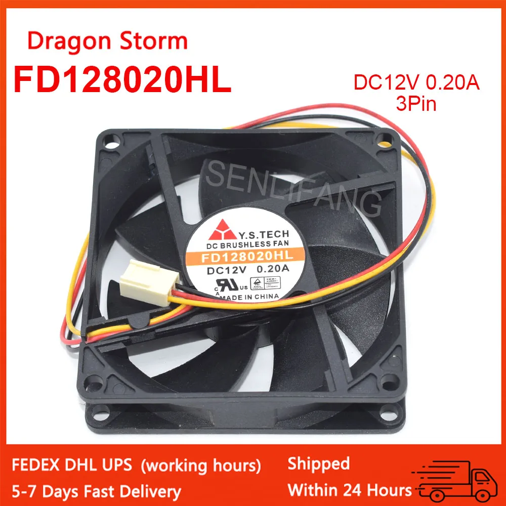 Comprar Nuevo 80*80*20MM FD 128020 HL DC12V 0.20A 8CM 8020 Ventilador de chasis inclinado de 3 pines