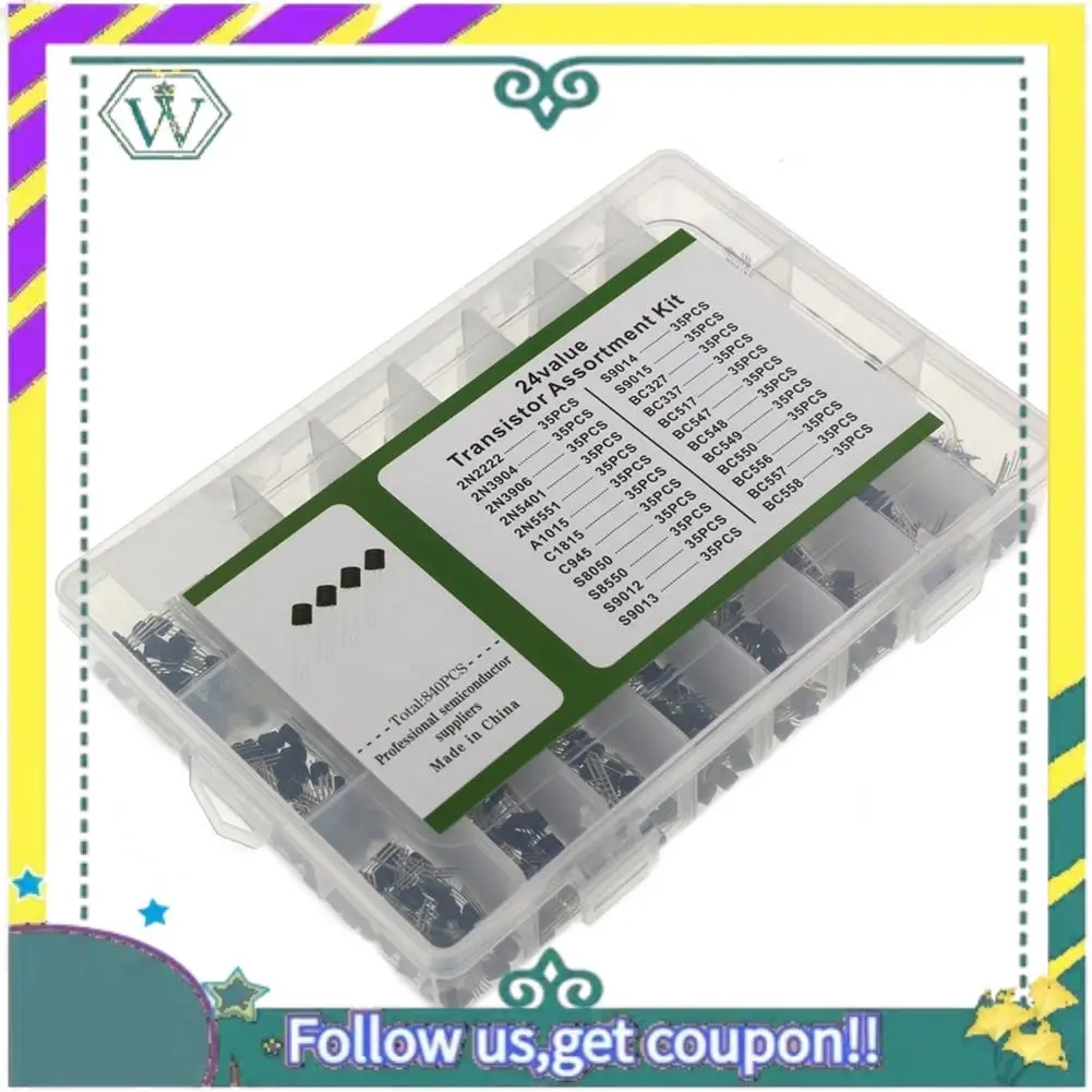 NEW 840Pcs/Set 24Values TO-92 Transistor BC547 BC327 BC337 2N2222 3904 PNP/NPN Transistors Set Electronics Assortment Kit