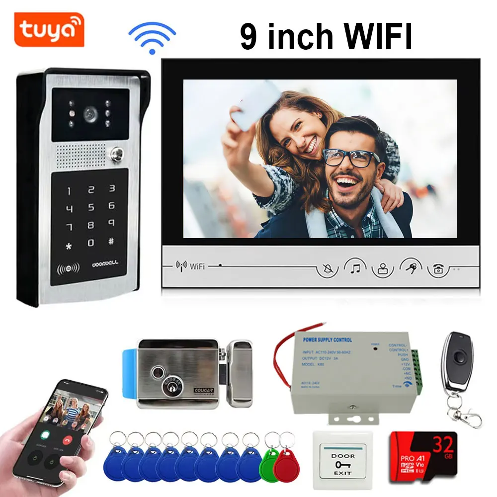 WIFI 9" pantalla HD LCD Tuya Smart Life aplicación vídeo puerta teléfono sistema de intercomunicación compatible con cámara con teclado de código RFID IR