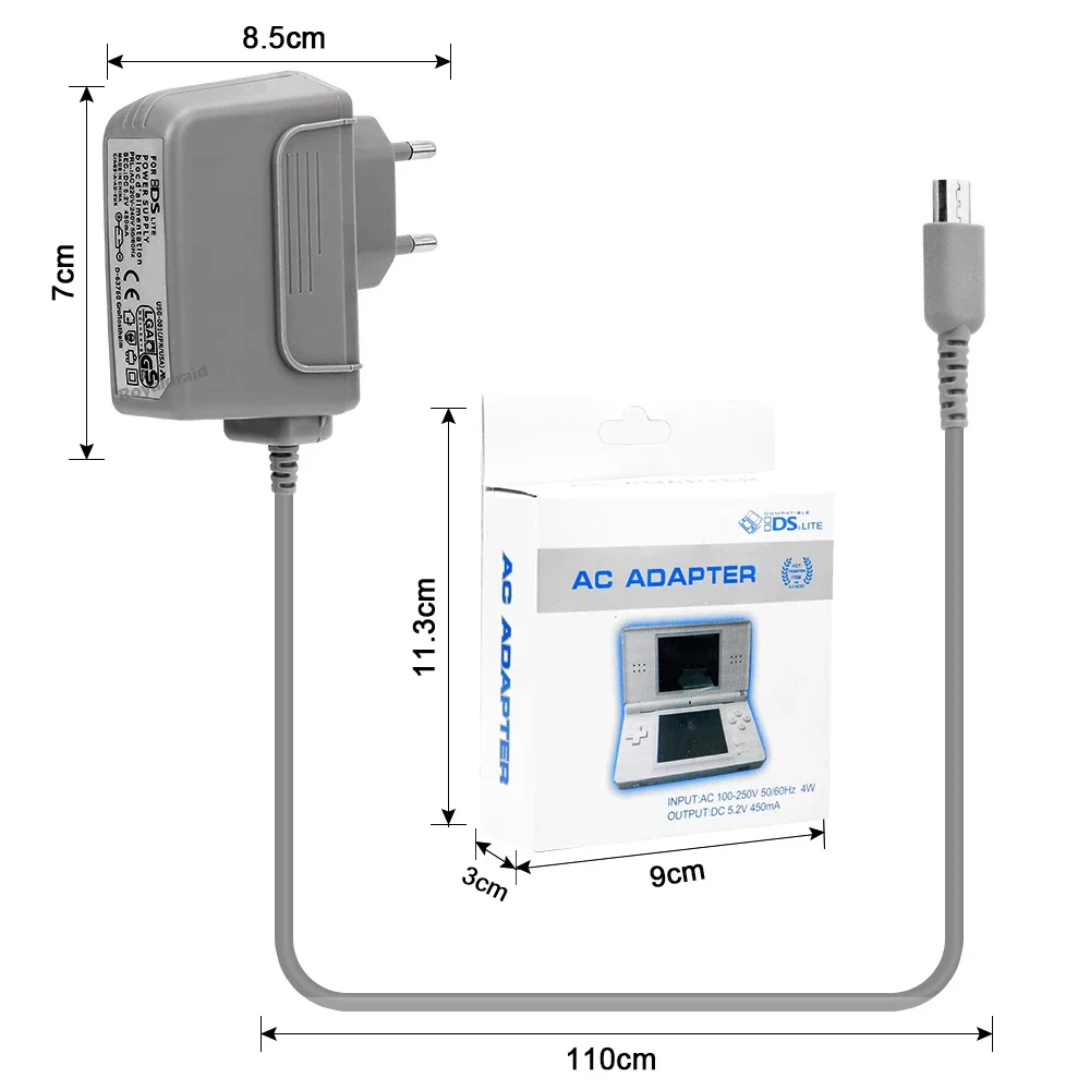 Hecho de material duradero e ignífugo, puede usarlo fácil y libremente para cargarlo.100% nuevo rendimiento estable y confiable, se puede utilizar en todo el mundoEntrada: 100-250 V 50/60 Hz Salida: 5,2 V 450 mAEl paquete incluye:NDS Lite
