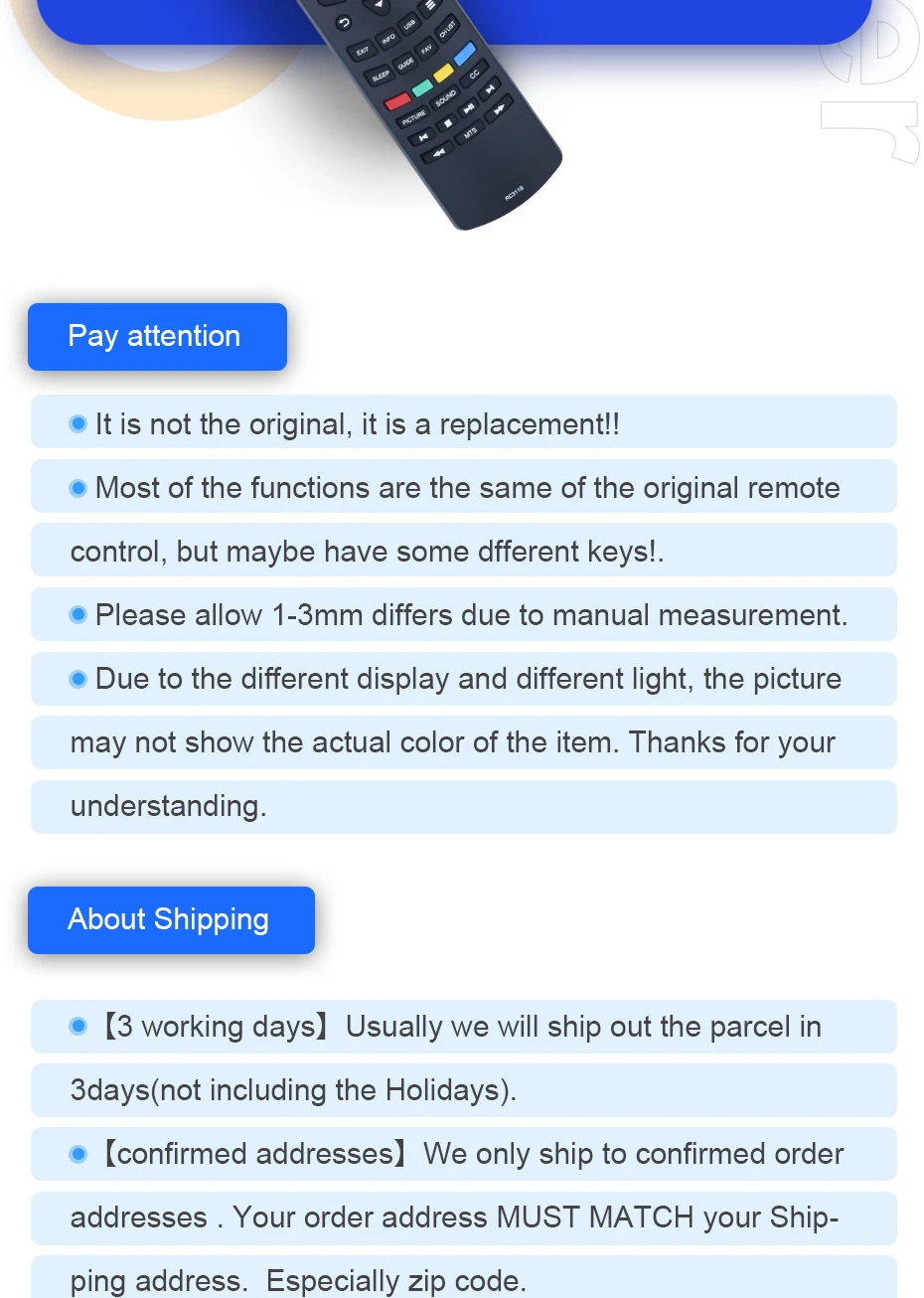 Asegúrese de que este sea el control remoto correcto antes de realizar el pedido. Gracias ~