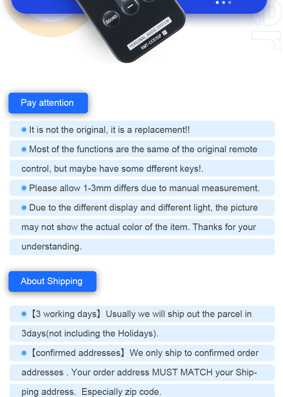Asegúrese de que este sea el control remoto correcto antes de realizar el pedido. Gracias ~