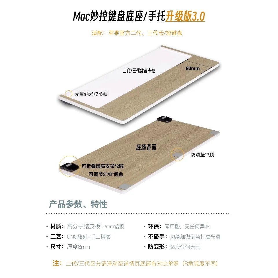 Nuevo adecuado para teclado mágico Apple Costom, soporte para teclados Compack, reposamuñecas de protección ambiental de madera, regalos