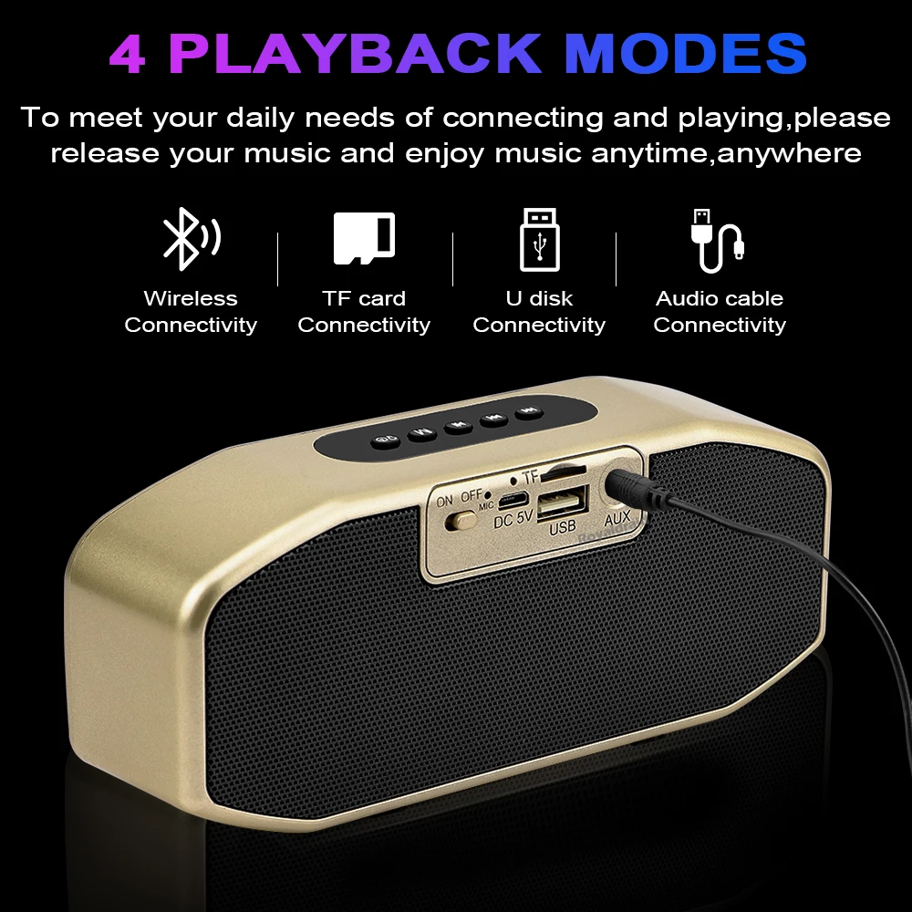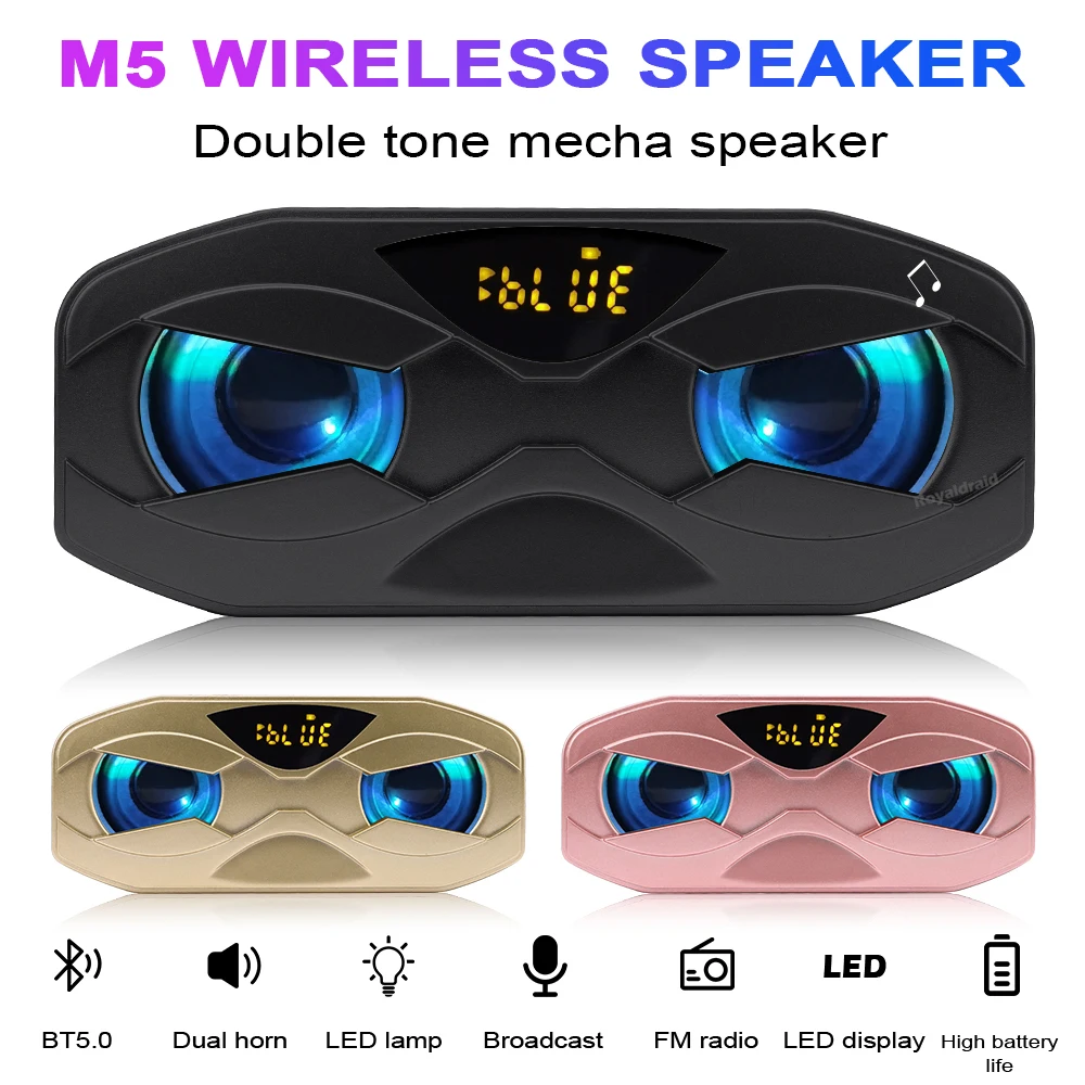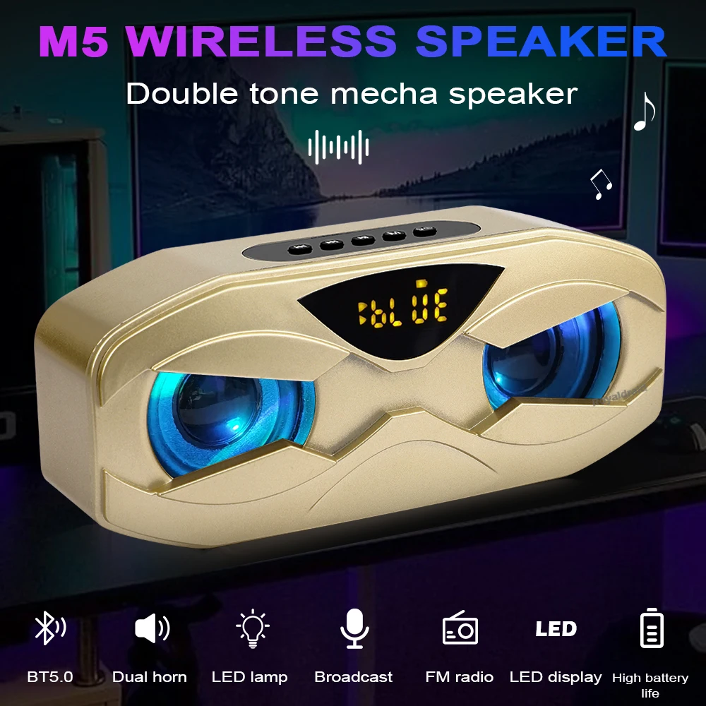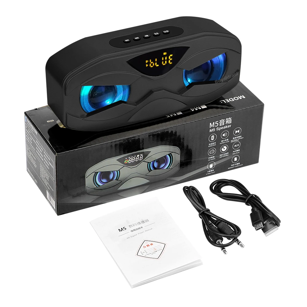 modname=ckeditorNuevo Altavoz portátil inalámbrico M5, Compatible con Bluetooth, Flash de ritmo LED, Radio FM, reloj, tarjeta TF, subwoofer de sonido envolvente Super 6D