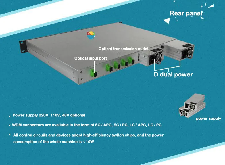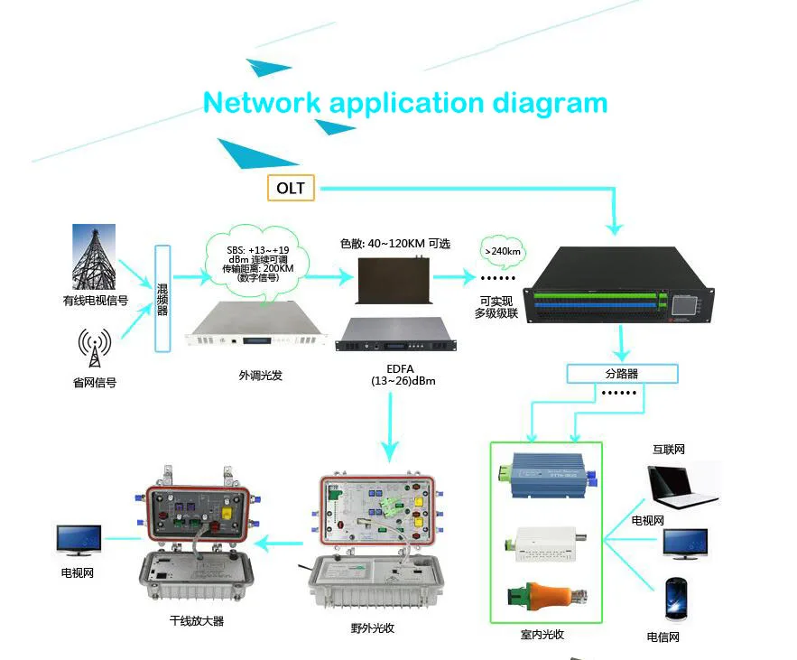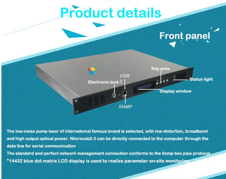 El amplificador de fibra dopada erbio (EDFA) es un equipo profesional CATV utilizado para amplificar y transmitir señal óptica de 1550nm en el sistema de transmisión CATV. Cable TV 1550nm Transmisión de longitud de onda única, transmisión de longitud de onda múltiple DWDM