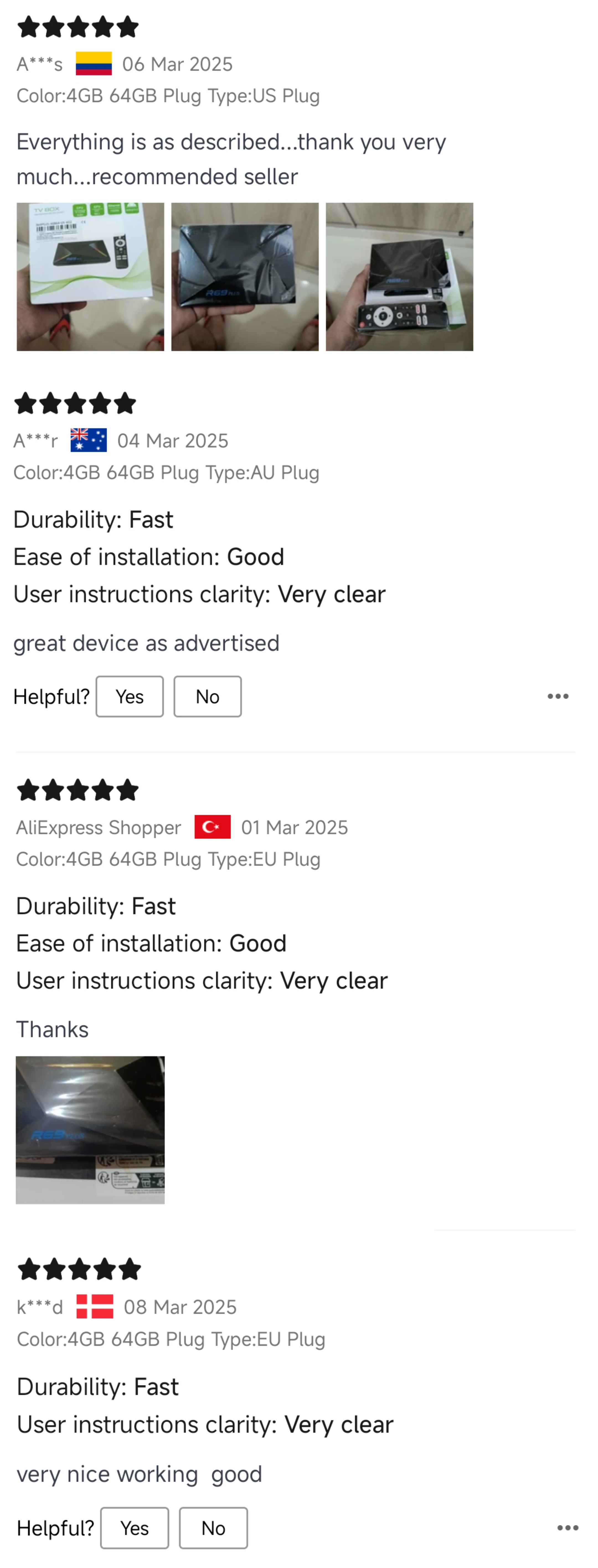 Compré varios productos, pero el TV BOX R69 Plus no llegó dentro de la bolsa, el vendedor siempre me entregaron y así tuve durante 4 días pero no me daba solución. Solicite un reembolso con Aliexpress y en 3 horas reembolso el dinero. Gracias Aliexpress por su responsabilidad y ayuda.