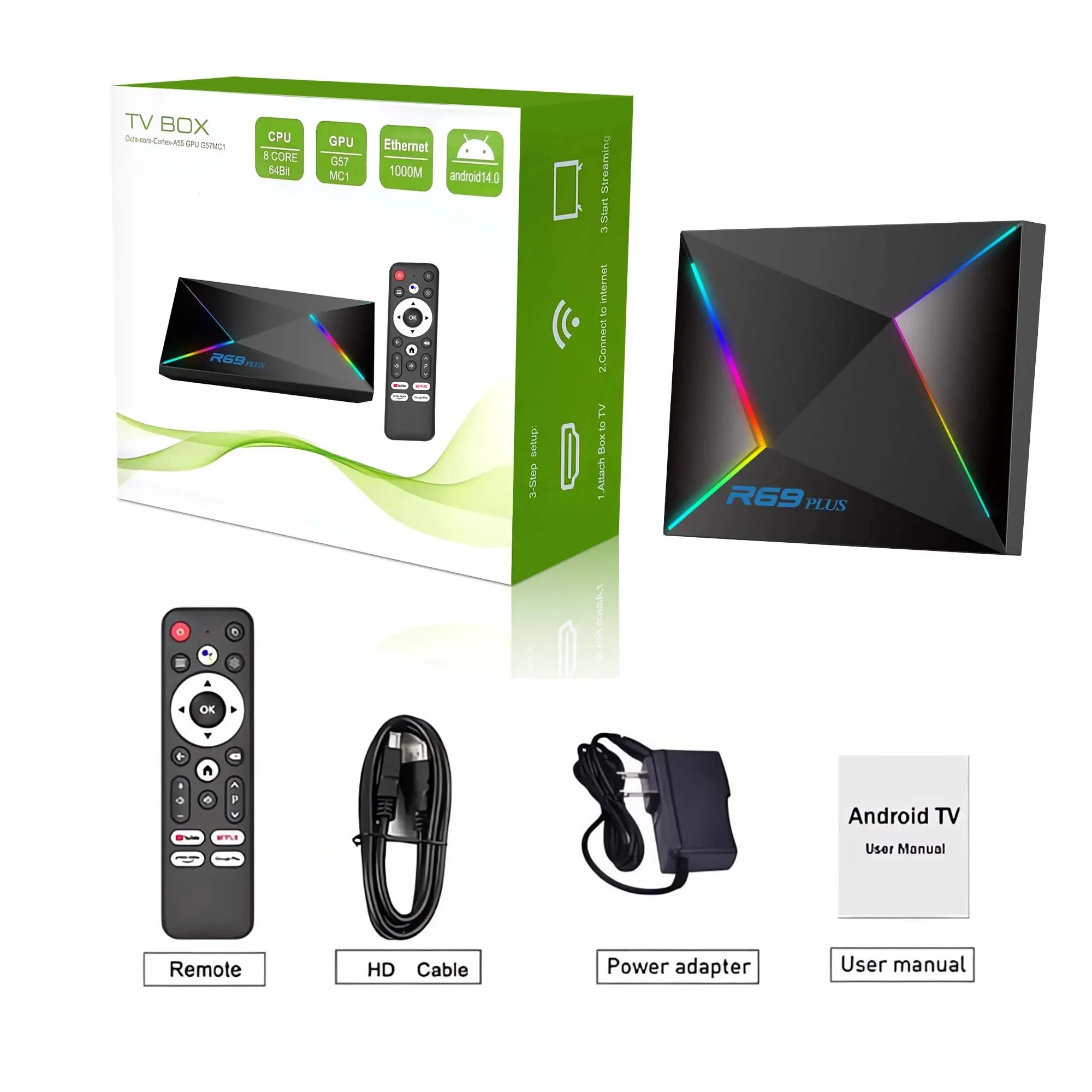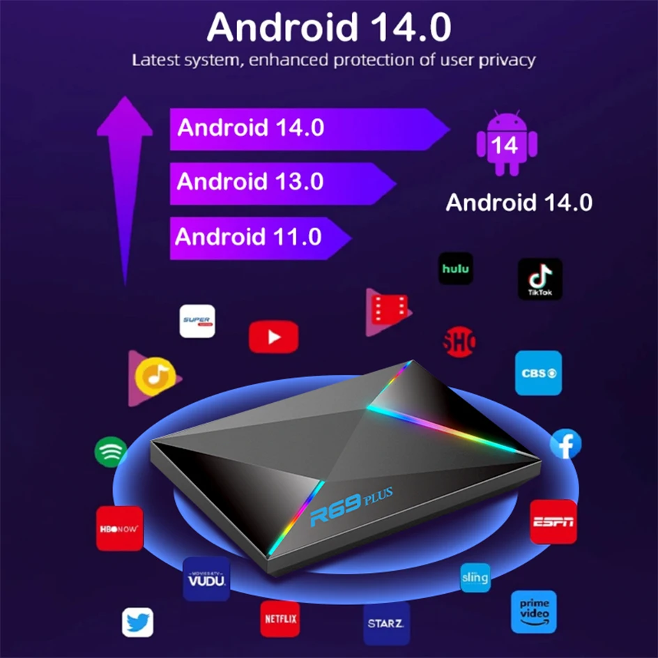 Nuevo Android 14.0 R69PLUS WIFI 6 Bluetooth 5.0 Allwinner H728 Octa-core ARM Cortex A55 TV Box Control por voz HD 8K Set Top Box