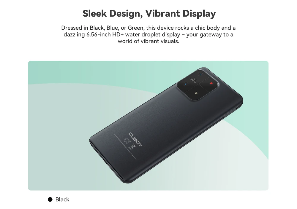 Vestido de negro, azul o verde, este dispositivo huele un cuerpo elegante y una deslumbrante pantalla HD+ de gotas de agua de 6,56 pulgadas: su puerta de enlace hacia un mundo de imágenes vibrantes.