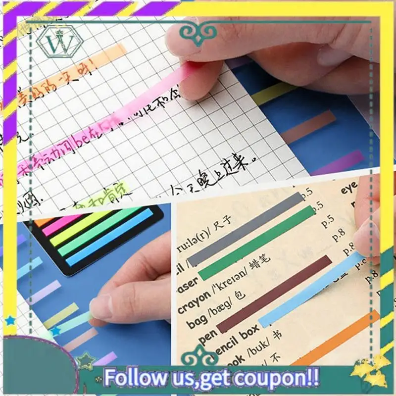 Tamaños: se adapta a la mayoría de los libros y puedes modificarlo fácilmente a la longitud necesaria; Cada almohadilla de tiras tiene 5 colores diferentes y solo necesita llevar una almohadilla individual y liviana al aula o a la biblioteca en lugar de a los voluminosos rotuladores resaltadores.