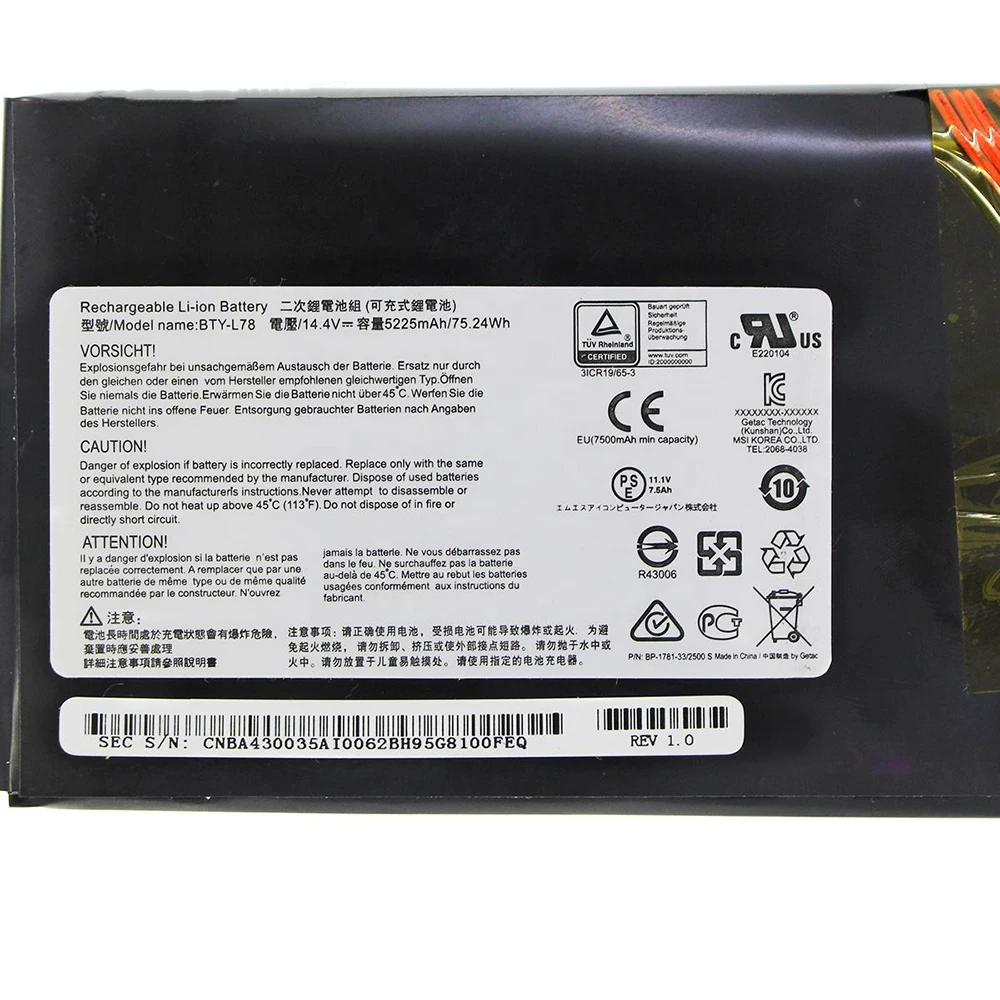 Comprar Nuevo BTY-L78 Original y genuino 14,4 V 75,24Wh batería de ordenador portátil para MSI GT62VR GT73 GT73VR GT80 GT80S GT83 GT83VR