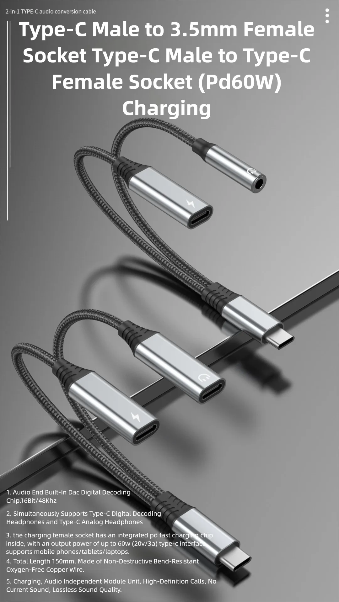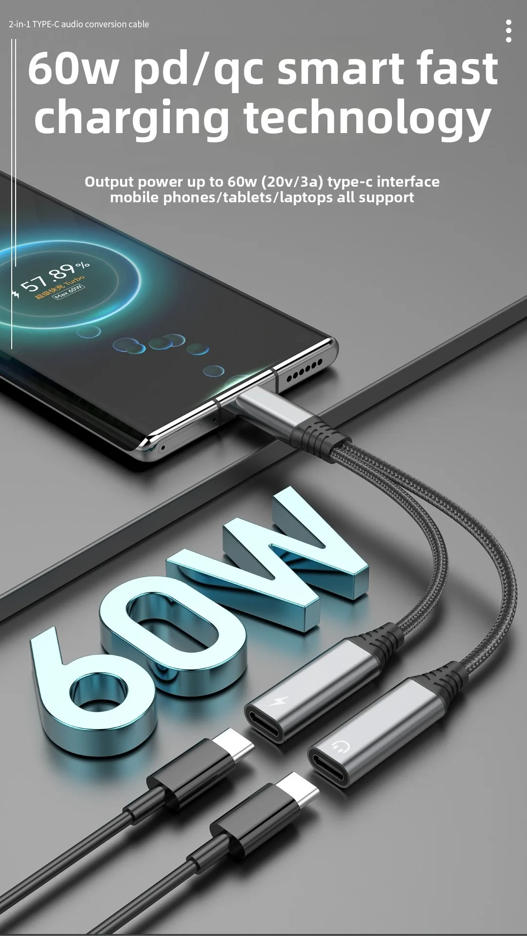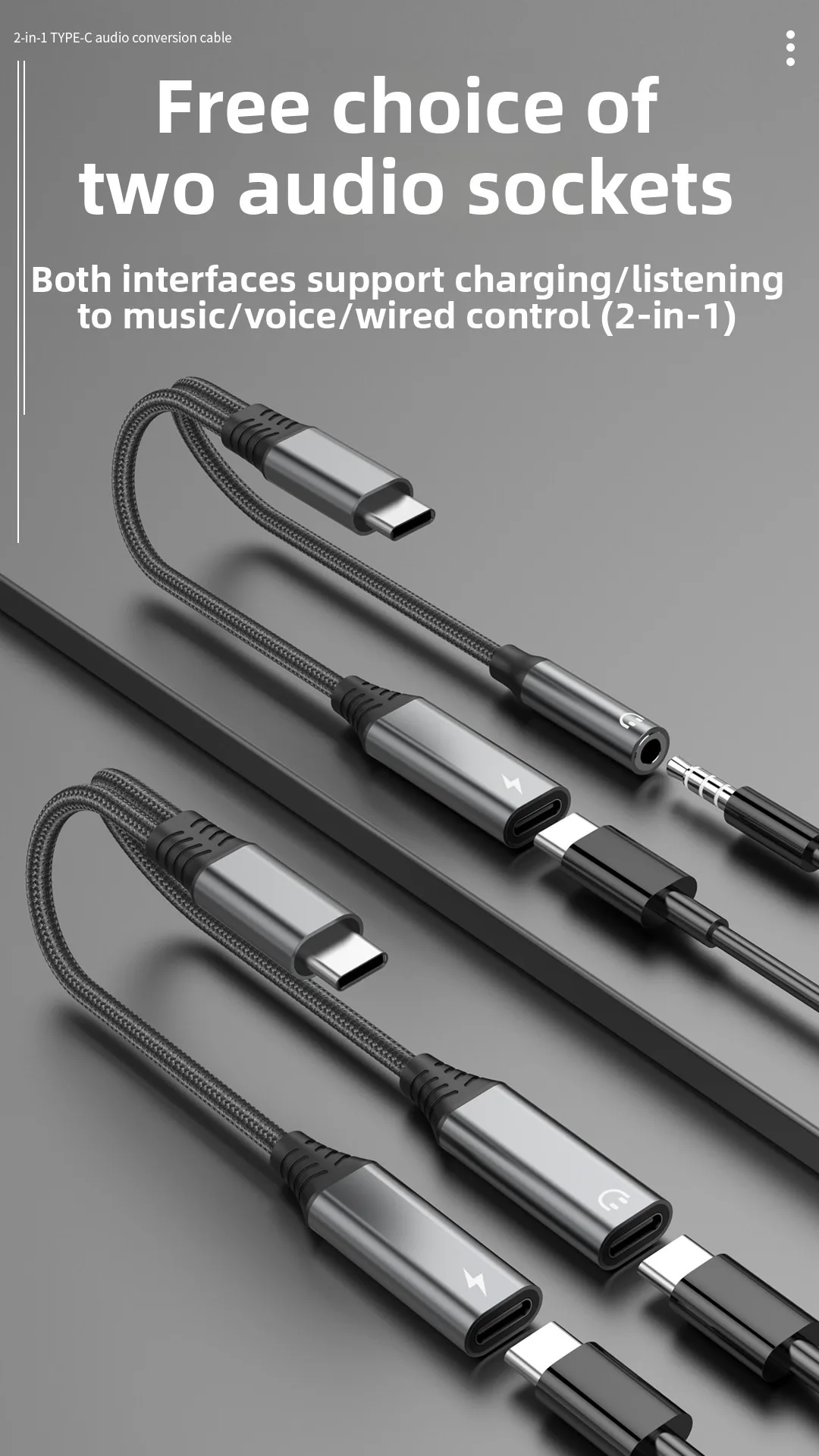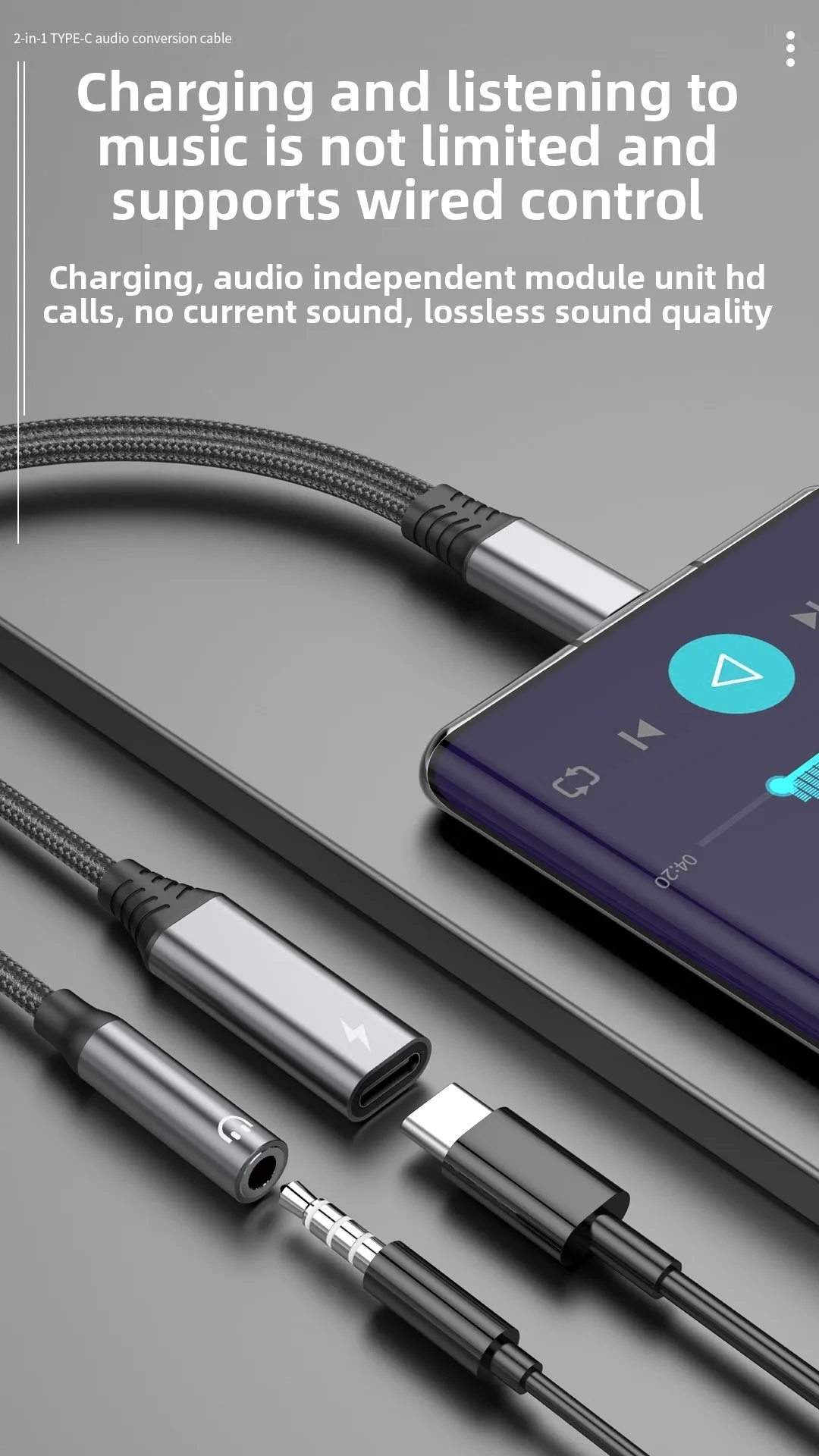 Nuevo Cable adaptador 2 en 1 tipo C a 3,5 MM para Samsung S25 Ultra Note Xiaomi 15 iPhone Huawei conector de carga rápida divisor de auriculares