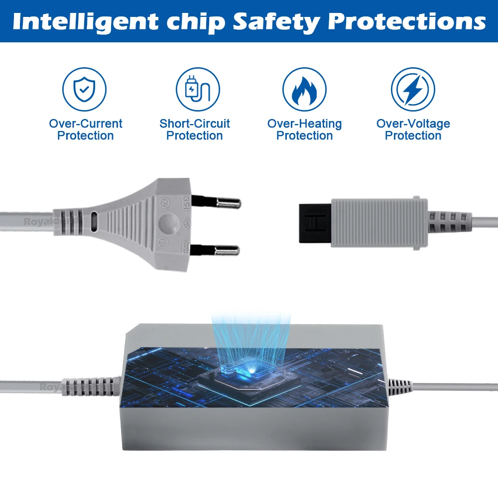 100% compatibilidad con la consola original. Garantizado para cumplir o superar las especificaciones del original. La entrada de voltaje universal le permite llevar su Wii' a cualquier parte del mundo sin un convertidor de voltaje pesado. Funciones de protección de la computadora portátil contra voltaje incorrecto, protección contra cortocircuitos y sobrecalentamiento interno.
