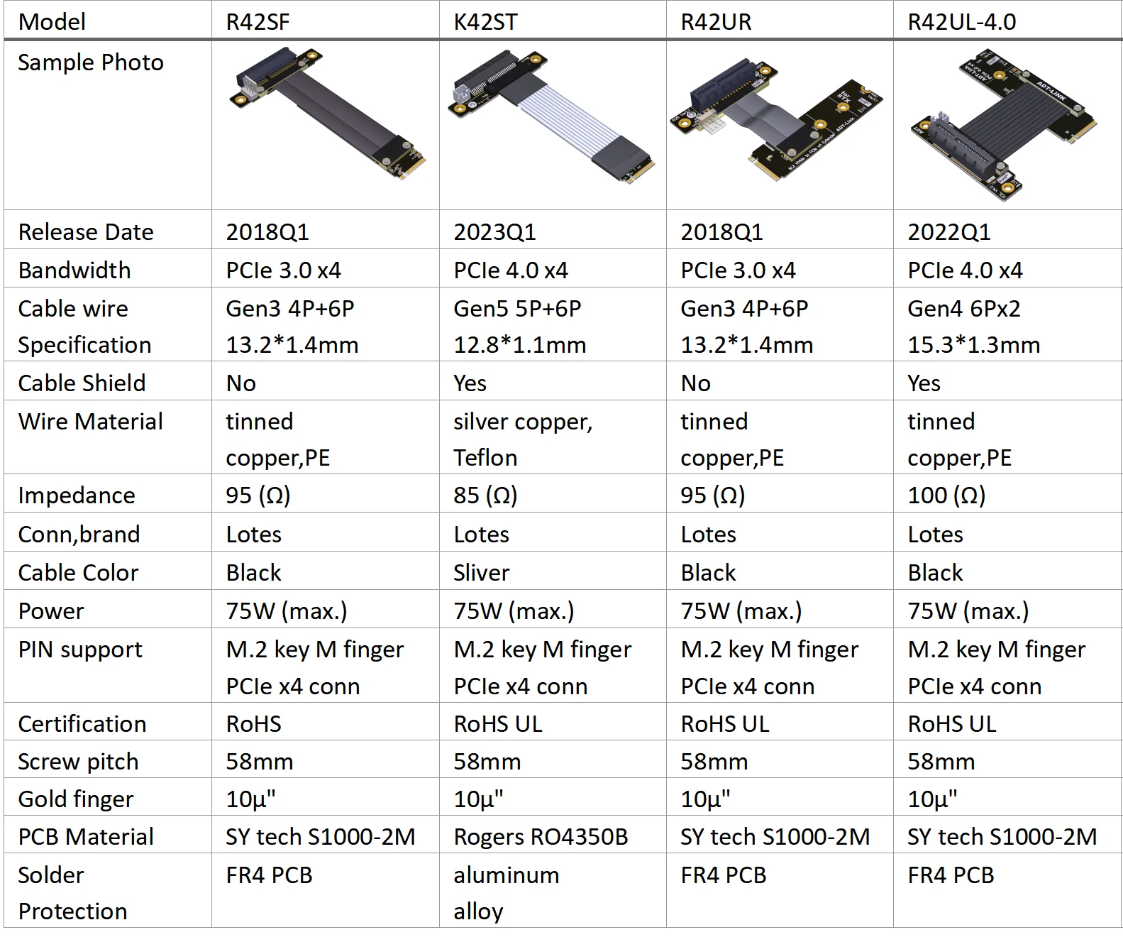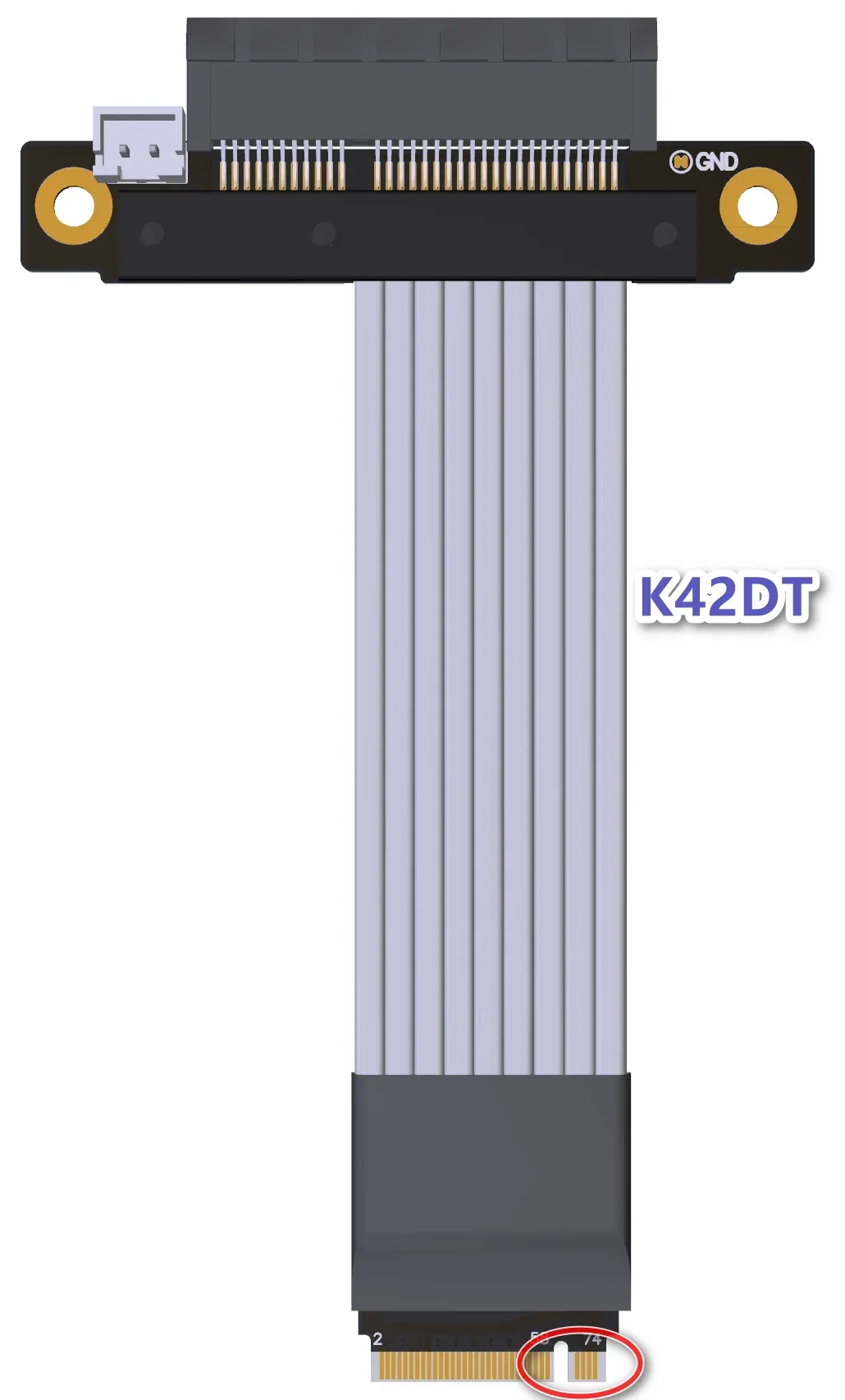K42DT-TU-M.2 NVMe a x4 Gold Rotación del dedo 180° Base hembra abierta inversa PCIe plana 4.0x4 64G/bps