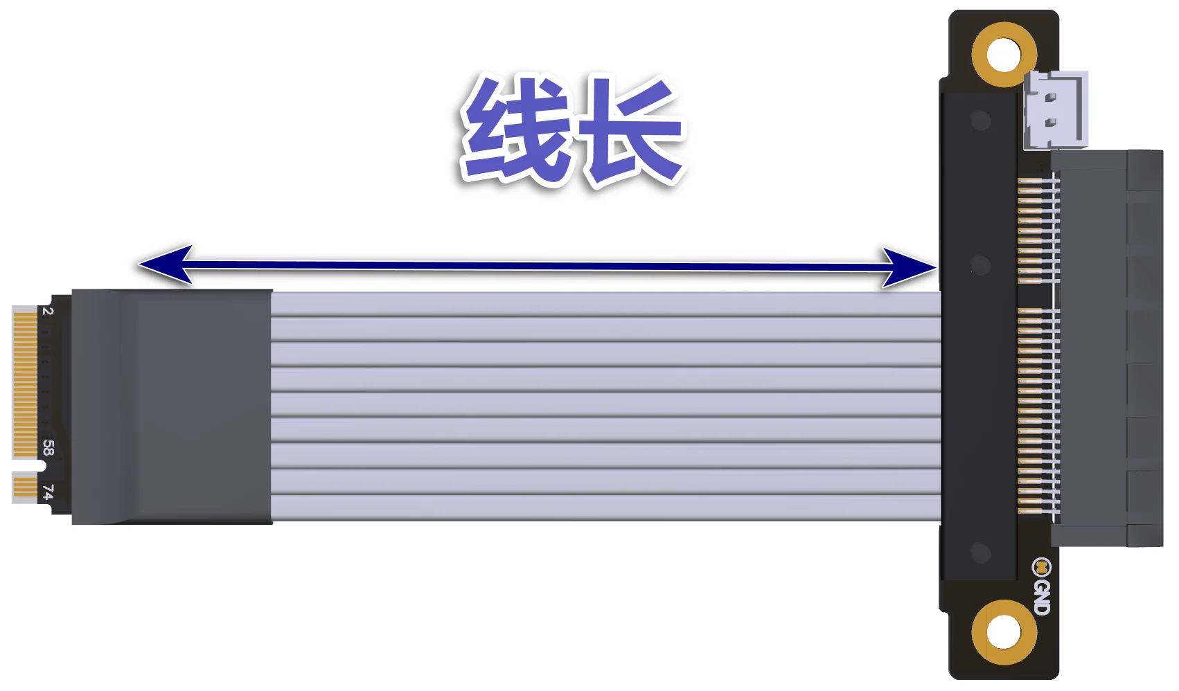 La longitud del cable se refiere a la parte del cable visible.No incluye la PCB ni el conector.Para conocer la longitud del cable, consulte la flecha azul de 5 cm en la siguiente figura.