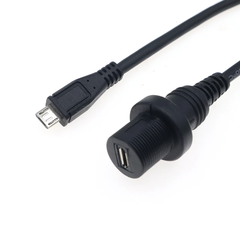 Micro USB macho a hembra cabeza pequeña Cable impermeable Panel de gabinete Cable Micro USB Android extensión de cable impermeable