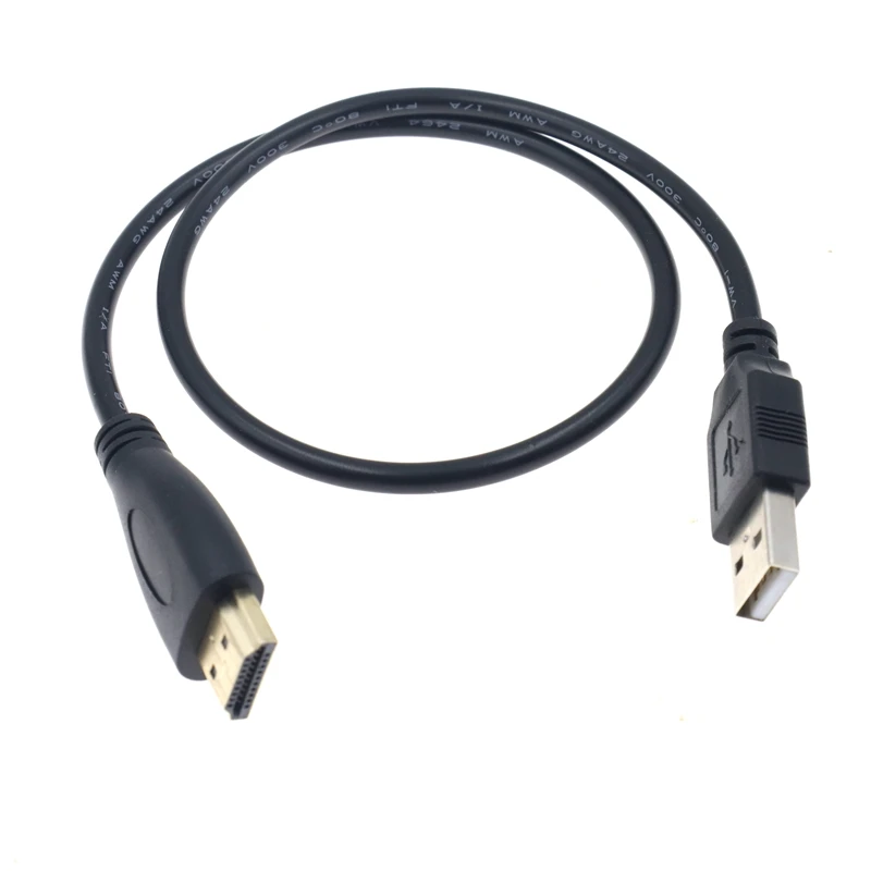 .Conector adaptador macho a hembra compatible con HDMI con cable de alimentación de cargador USB 2.0 de 50 cm.