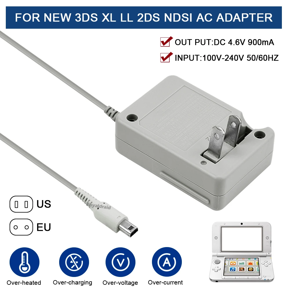 Nuevo cargador adaptador de CA de fuente de alimentación de pared para viaje en casa de 100-240V para nuevo enchufe 3DS XL/2DS XL/3DS XL LL/3DS/2DS/NDSI/NDSI XL UE EE. UU.