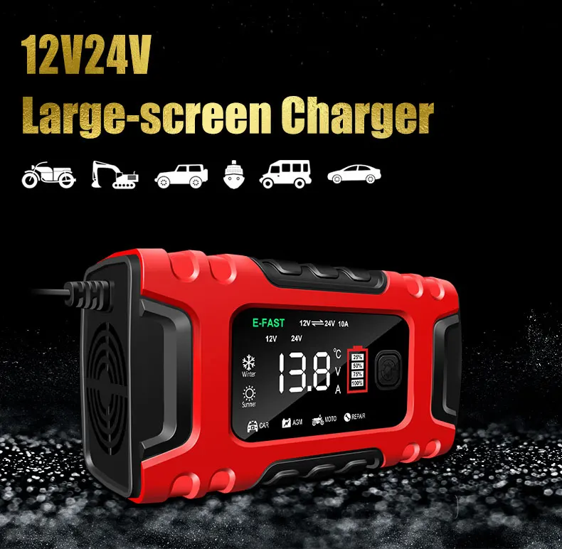 Comprar Nuevo cargador de batería de coche 12V10A/24V5A carga rápida inteligente AGM GEL mantenimiento de cargador de batería LCD de ácido de plomo húmedo