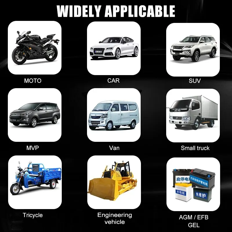 • Carga rápida inteligente :Este cargador de batería para automóviles ofrece una carga inteligente rápida, maximizando la eficiencia y reduciendo el tiempo de espera.