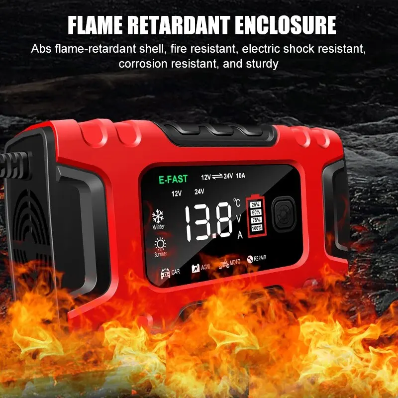Comprar Nuevo cargador de batería de coche 12V10A/24V5A carga rápida inteligente AGM GEL mantenimiento de cargador de batería LCD de ácido de plomo húmedo
