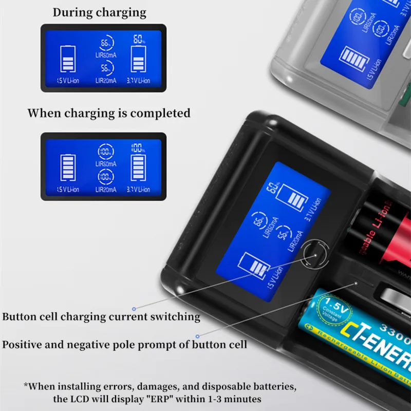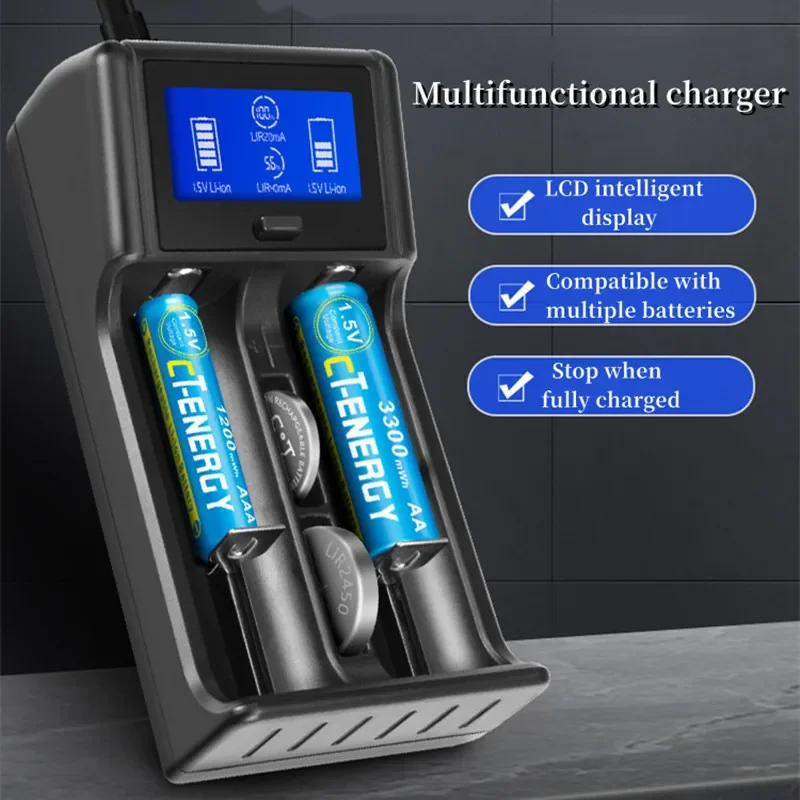 Comprar Nuevo cargador de batería recargable 2032 2450 Compatible con carga recargable AA AAA 1,2 V Ni-MH 3,7 v baterías de iones de litio puerto USB