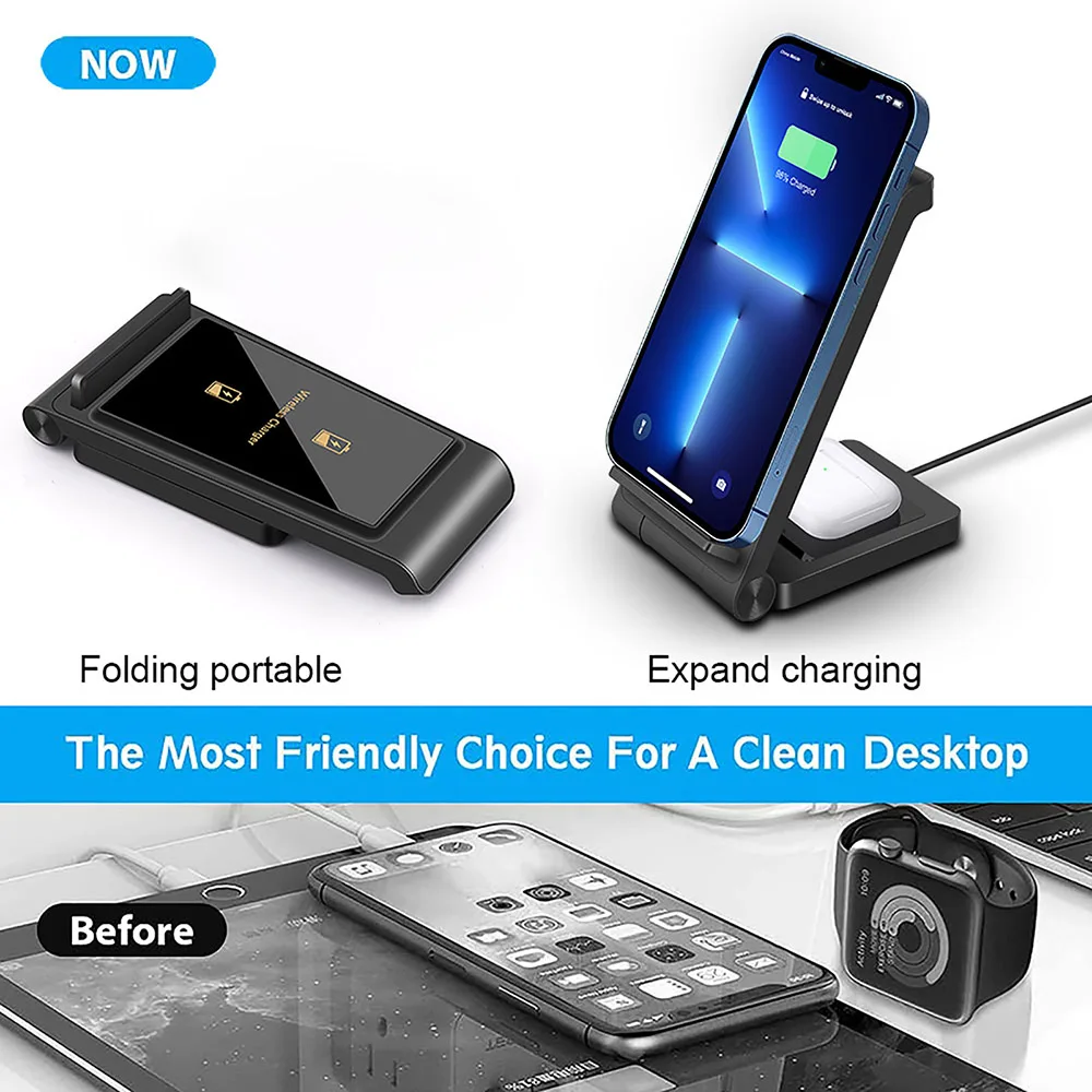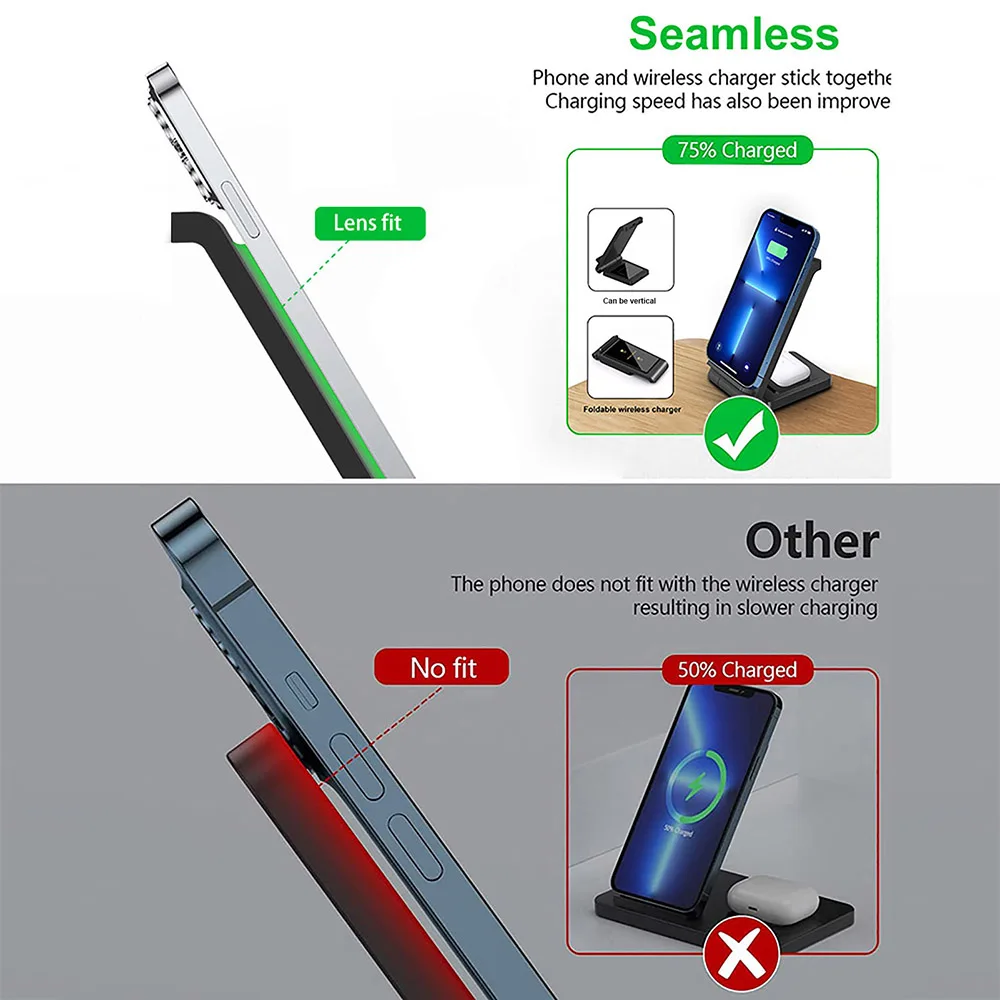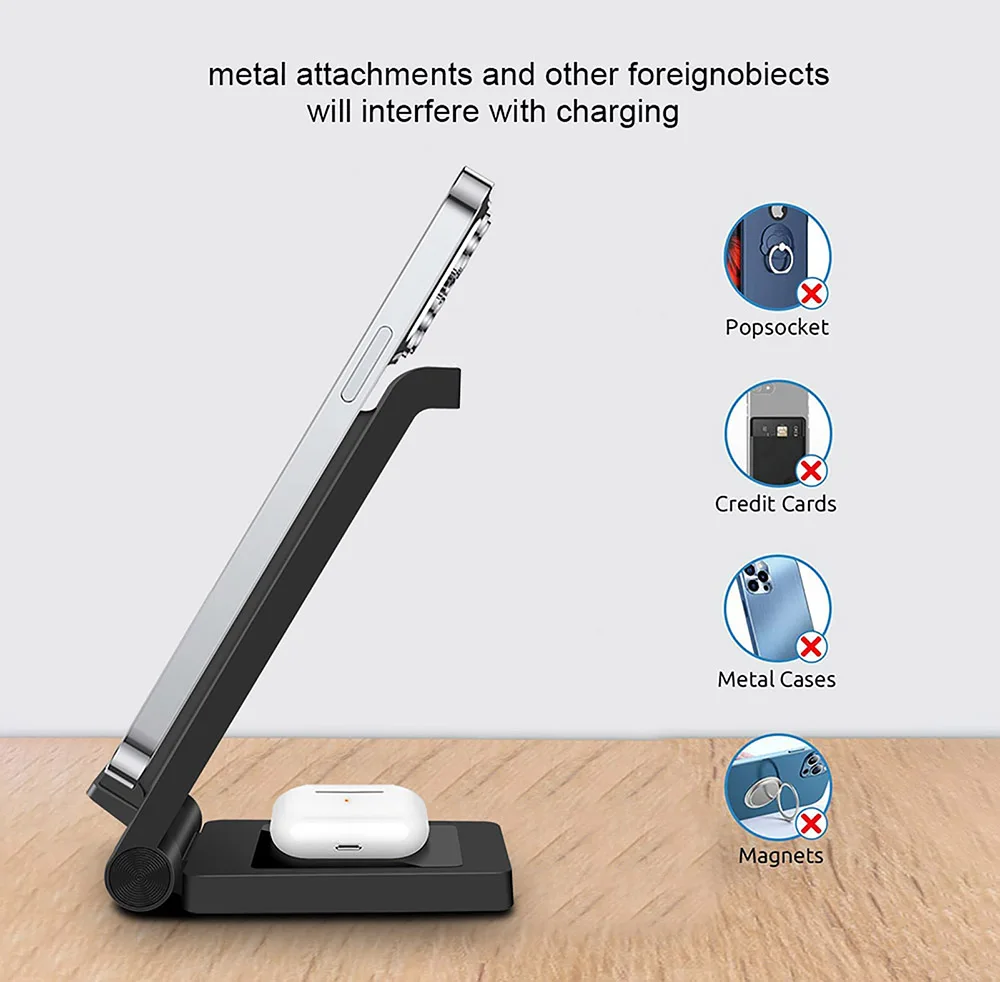 Diseño delgado y Plegable:Diseño ligero, elegante y plegable. Esta almohadilla de carga inalámbrica ocupa muy poco espacio, lo que hace que sea más fácil guardarla en los bolsillos, una almohadilla de carga inalámbrica de alta velocidad se puede llevar fácilmente durante viajes o negocios, este cargador se siente sólido y se ve muy bien sin importar si lo usa en la oficina o en casa.