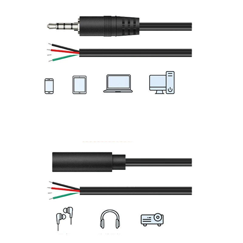 Proceso de pelado de estaño trasero, cable de audio macho y hembra de un solo cabezal de 3,5 mm, conductor de cobre puro,