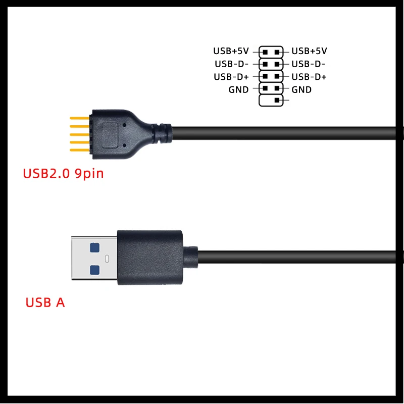 Nuevo conector USB Cable de extensión USB USB2.0 a 9 pines Conector 9 pines macho a USB externo A macho placa base de PC Cable de datos interno