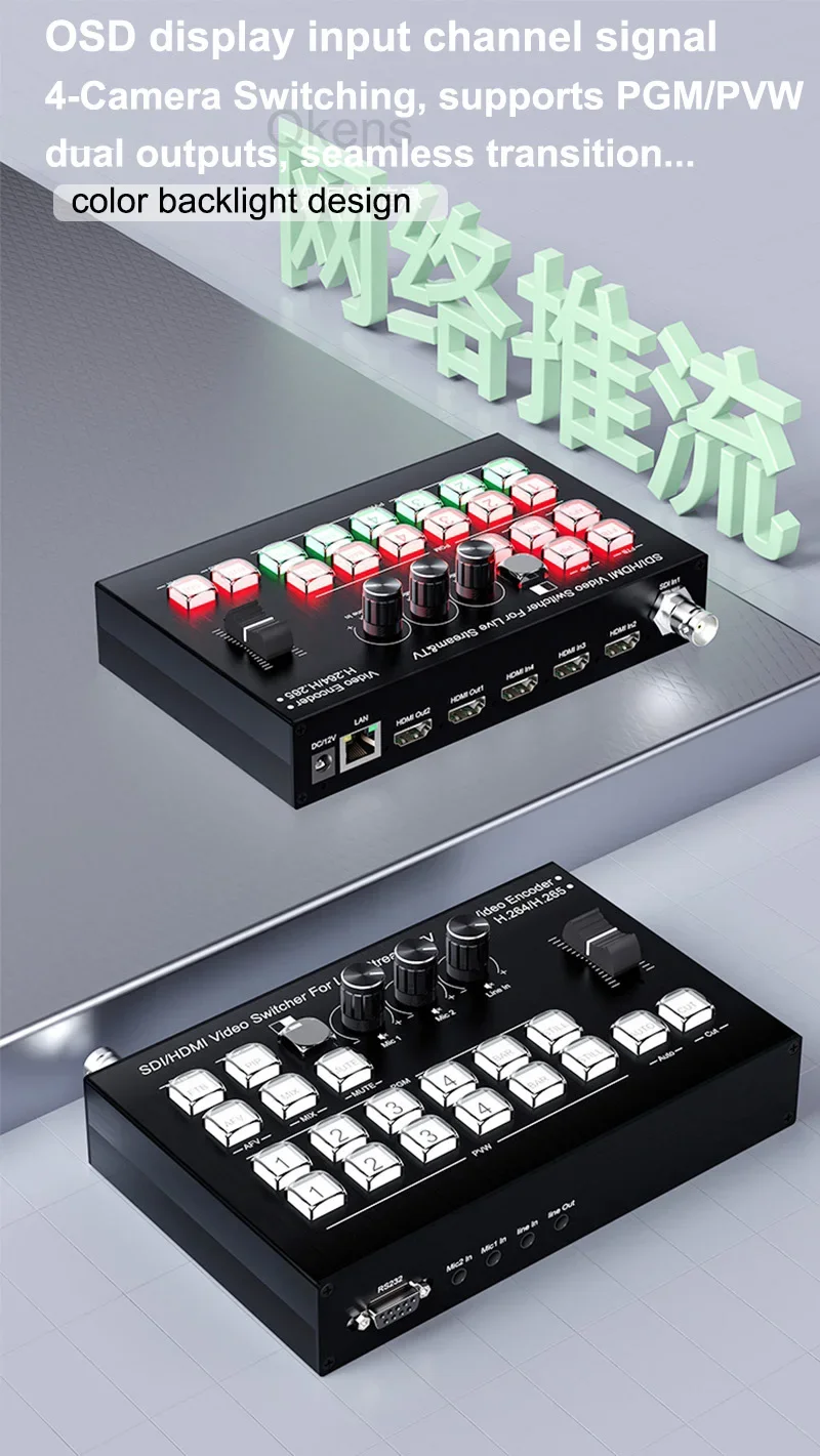 Nuevo conmutador de vídeo H.265 SDI HDMI con codificador de transmisión en vivo multicanal 4 cámaras transmisión en vivo interruptor continuo PGM PVW PIP